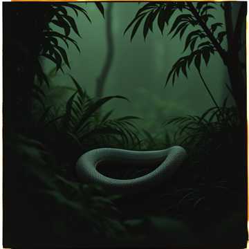 Dark, tension-filled instrumental piece evoking a deadly python gliding, coiling, and preparing to strike, No staccato until the final strike, Build a sense of stealth and muscular motion using legato low strings (cellos, basses) with slow glissandi, bass clarinet, and muted trombone to create sinuous, twisting melodic lines, Use sustained harmonic swells and overlapping textures to suggest slow, stealthy movement; gentle crescendo and decrescendo patterns provide subtle “rhythm” without any percussive attacks, Sparse, soft, round percussion (e, g, soft timpani rolls or low hand drums) can add tension through swell rather than sharp hits, Tempo slow, hypnotic, 50–65 BPM, Only at the very end: a single, explosive strike with staccato brass, accented percussion, and sharp high strings, Mood: lethal, hypnotic, coiled, stealthy, and predatory