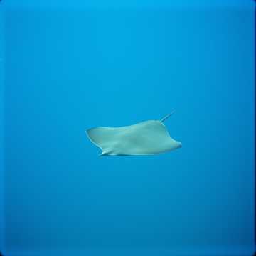 Instrumental track inspired by the graceful underwater glide of a stingray, Smooth, flowing textures with electric piano, soft synth bass, and brushed cymbals, Medium-slow tempo around 70–85 BPM, Wide, sweeping melodic lines with gentle vibrato to mimic underwater motion, Subtle swells, shimmering harmonics, and occasional deep pulses to suggest movement through open water, Style: ambient jazz fused with oceanic sound design, Mood: calm, fluid, weightless, mysterious