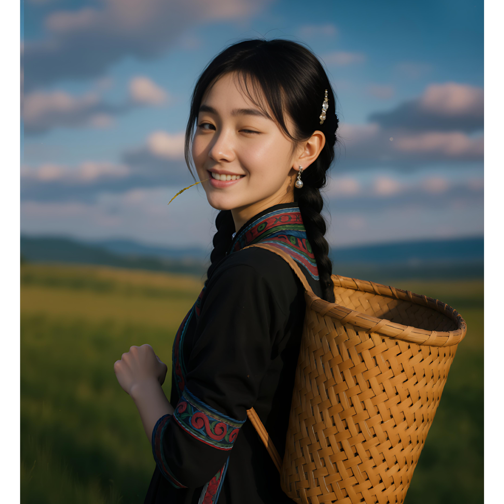 A soft and sweet junior high school girl's charming voice, with a subtle, ethereal echo, A catchy ethnic minority inflection, evoking a gentle first love, [Arrangement]