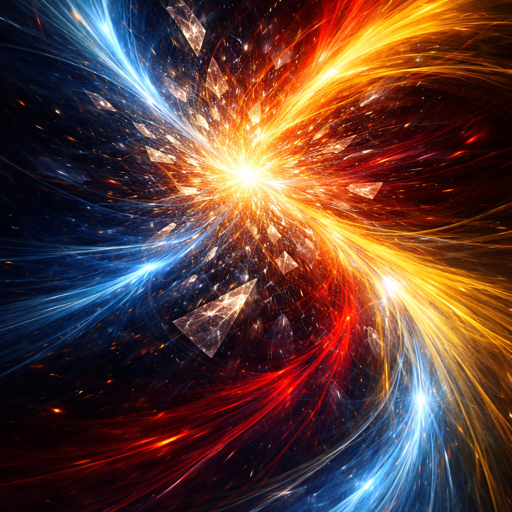Cinematic electronic with rhythmic fragmentation and pulsing transitions, Medium tempo, Blend evolving textures with tense arpeggios and steady percussive elements, Bass should remain tight and balanced – no galloping or overdrive, Distortion may be used for texture but never dominate, Mood: tense, scattered, then resolved, No vocals