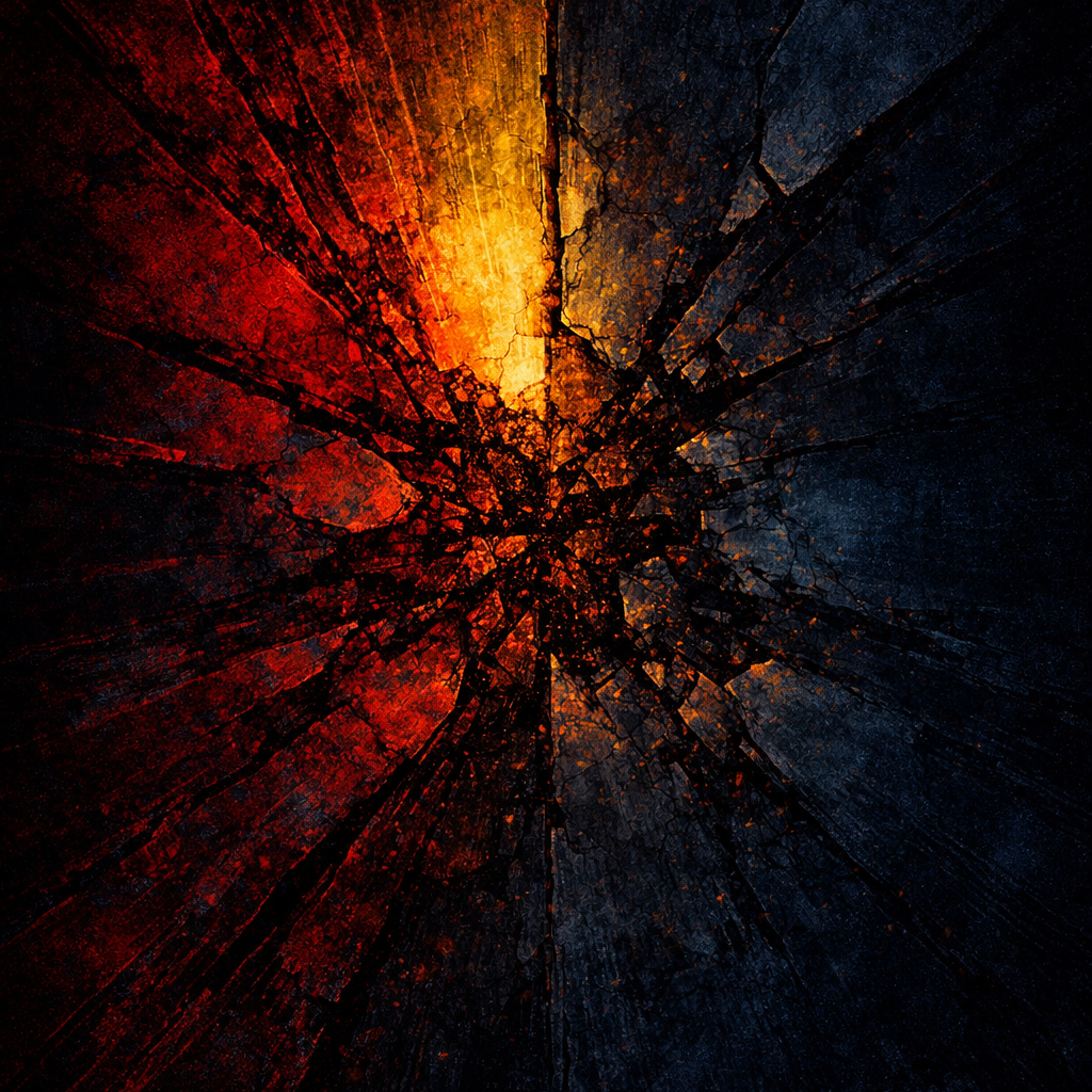 Dark cinematic EDM with glitchy textures and broken structure, Medium tempo, Use detuned synths, abrupt transitions, and pulsing low-end to reflect a loss of cohesion and unraveling control, Bass should remain tight and balanced – no galloping or overdrive, Distortion may be present but must never dominate, Avoid slow tempo or ambient haze, Mood: disoriented, fractured, unraveling, No vocals