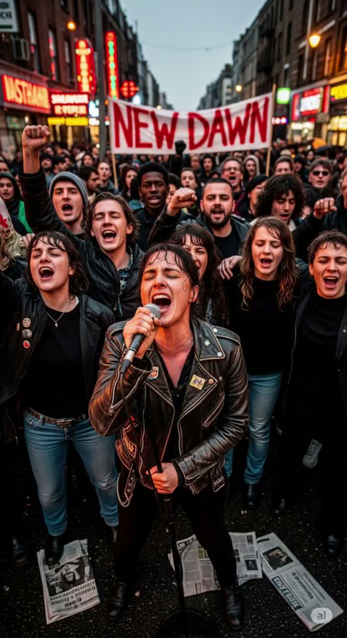 Description: A ferocious, high-speed thrash metal anthem with a relentless, pounding rhythm, The verses are an aggressive call to action, building tension towards a massive, defiant chorus, The music should have razor-sharp, distorted guitars, relentless drumming, and a driving bassline, The final chorus should explode with a feeling of unstoppable rebellion