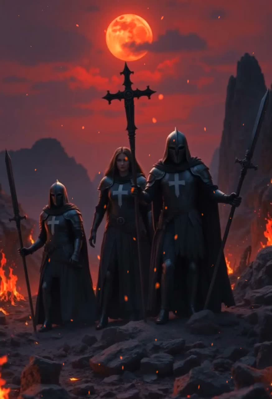 Doom metal track with dark fantasy atmosphere, Slow, heavy guitars, ritual drums, deep choirs, and ambient textures, Voice should be deep, gritty, half-sung half-spoken—like a cursed warlord chanting judgment, Epic, oppressive, cinematic