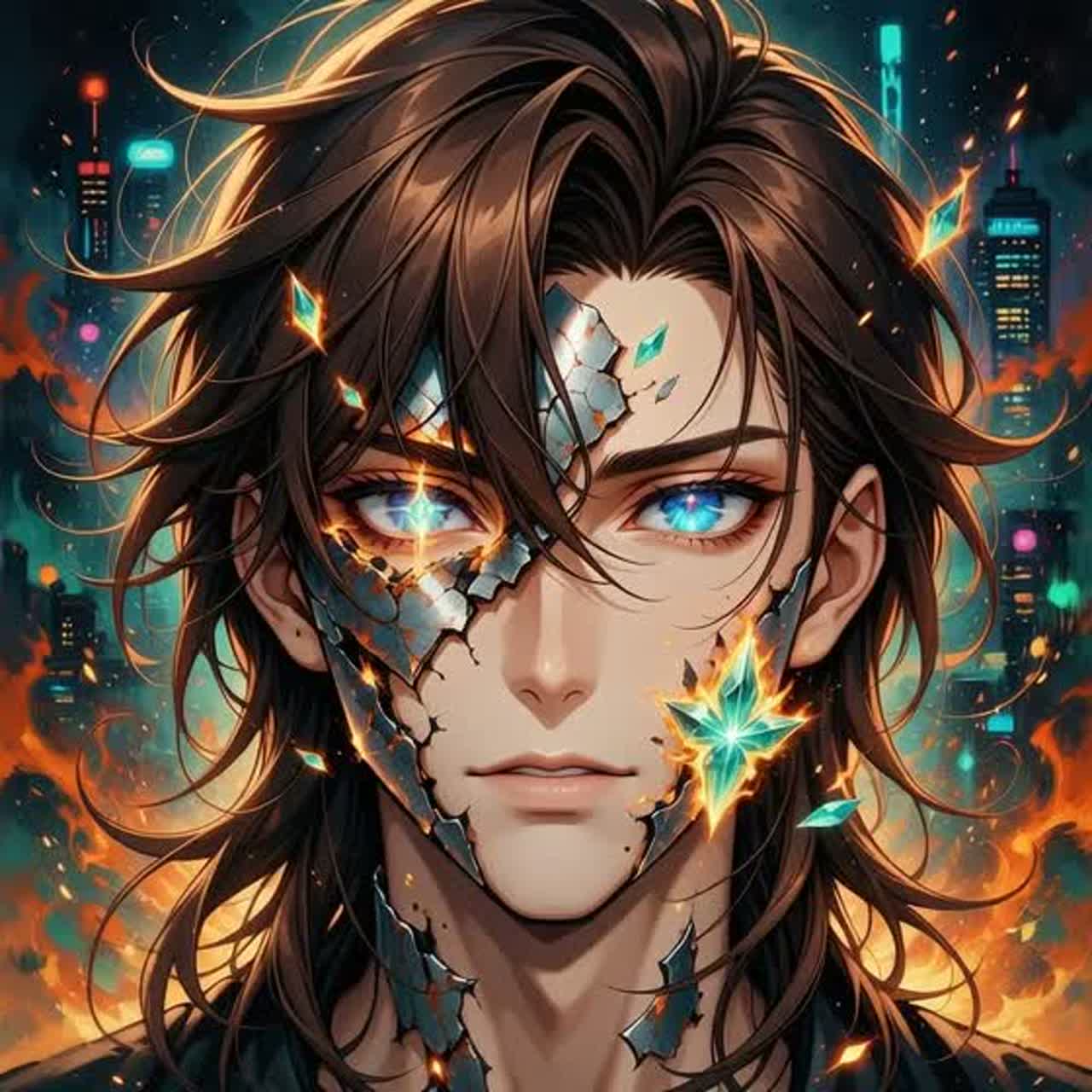 J-Rock and Power Metal fusion, Distorted electric guitars play palm-muted chugging and rapid alternate-picked riffs, A synthesizer provides bright, staccato lead lines and atmospheric pads, The drums feature a driving double-kick pattern with a prominent snare on the backbeat, A melodic male tenor vocal performs with high energy and vibrato, The bass guitar follows the kick drum with a distorted, overdriven tone, The track is in the key of E minor at 176 BPM in 4/4 time, Orchestral strings and brass accents appear during the chorus for a symphonic layer, The arrangement includes a technical electric guitar solo with sweep picking and rapid legato runs