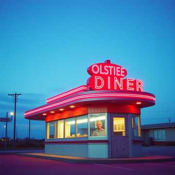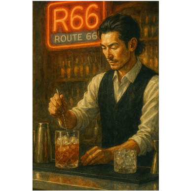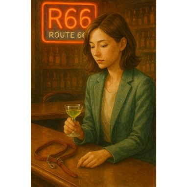 Mood: Nostalgic yet upbeat, evoking 1950s Americana, Concept: A young woman walks alone on Route 66, finds warmth in a quiet diner and a glass of bourbon, The song blends spoken verses with melodic choruses, capturing emotional warmth and New Year’s hope, Sound: Slap-style guitar playing adds rockabilly energy, Doo-wop harmonies enrich the chorus with warmth and vintage charm, Upbeat rhythm supports a mix of spoken-style verses and melodic hooks, Vocals: Young female lead, Expressive delivery with a blend of spoken and sung lines, Keywords: bourbon, Route 66, diner, quiet night, third time’s the charm, golden sign, R66