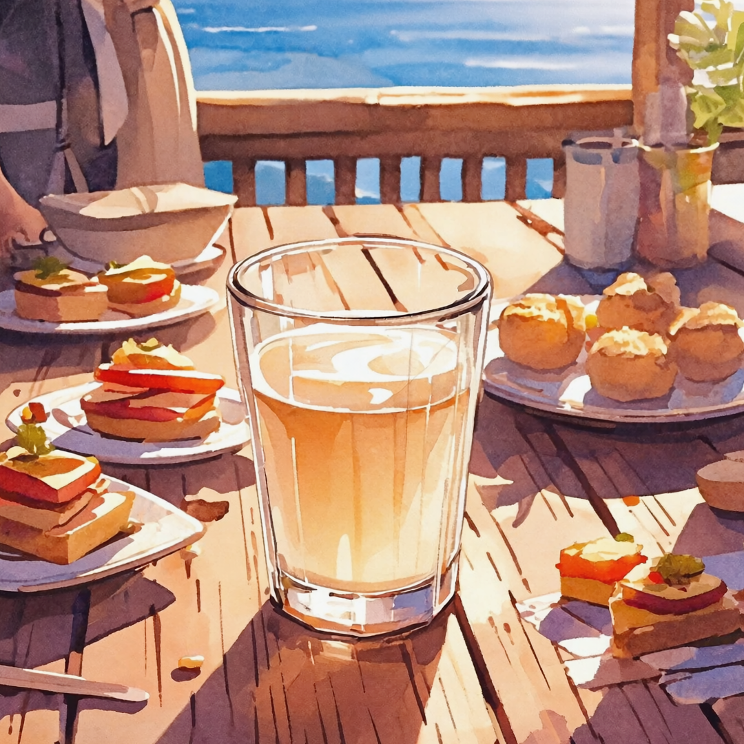 Theme: A quiet afternoon at the Czech Pavilion during Expo Osaka, The protagonist drinks a Hladinka-style beer, noticing the foam, the glass, and the bartender’s pride, The taste evokes distant kindness, and the memory lingers like a soft melody, Keywords: Czech Pavilion, Hladinka, beer foam, gentle bitterness, Expo Osaka, Czech pride, quiet kindness, acoustic ballad, folk strings, clarinet, female vocal, Czech language