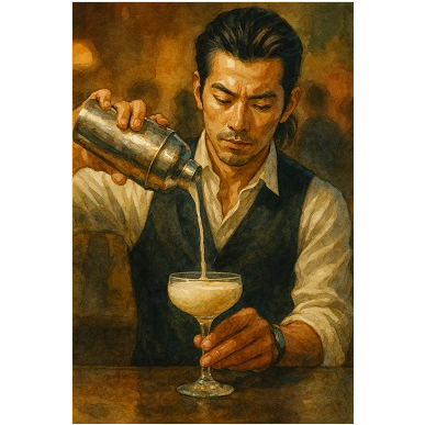 A jazz ballad set on a quiet winter night, tracing a young man's emotional journey from Sapporo back to Tokachi, The cocktails—Brandy Alexander and Hot Buttered Rum Cow—symbolize urban solitude and the warmth of home, Acoustic guitar and electric piano gently support the vocals, while a saxophone outro closes the story, Sung in Japanese by a male vocalist with a soft, introspective tone