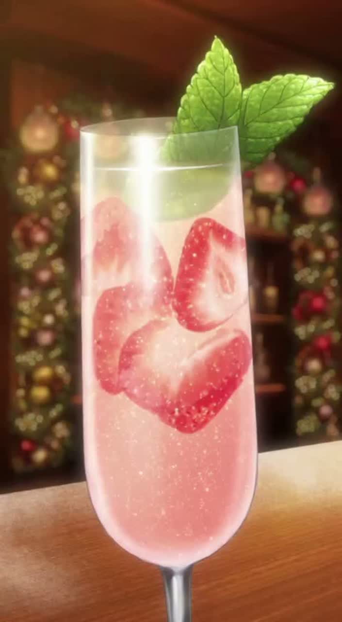 Create a festive K-pop idol song titled “Strawberry Sparkle Christmas, ” The song should be bright, romantic, and playful, capturing the excitement of a Christmas night shared over strawberry champagne, Use a catchy melody and polished production with layered vocals and harmonies, Instrumentation includes: vocals, two guitars (acoustic and electric), bass, drums, cello, chorus, and keyboard, The mood is sparkling, sweet, and slightly emotional—perfect for a snowy holiday stage performance, Include dynamic rhythm changes and a memorable chorus that evokes the feeling of raising a glass under twinkling lights