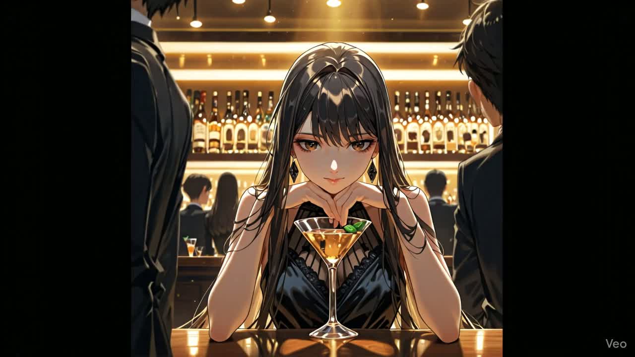 A stylish fusion of K-pop and K-Rock performed by a female idol group, The song tells the story of a young woman determined to prove she’s grown up—no longer the “little sister” figure, She steps into a bar for her first solo drink, ordering a Black Russian cocktail with sweet Kahlúa, trying to embody adult elegance, The lyrics mix Japanese, English, and Korean, capturing her playful confidence, awkward charm, and quiet determination, The arrangement features edgy electric guitar riffs, punchy synths, and rhythmic vocal harmonies, The mood is bold, cheeky, and empowering, with a touch of sweetness and cinematic flair, Ideal for a group with strong personalities and expressive vocals, Vocal pretty voice, kute, harmony