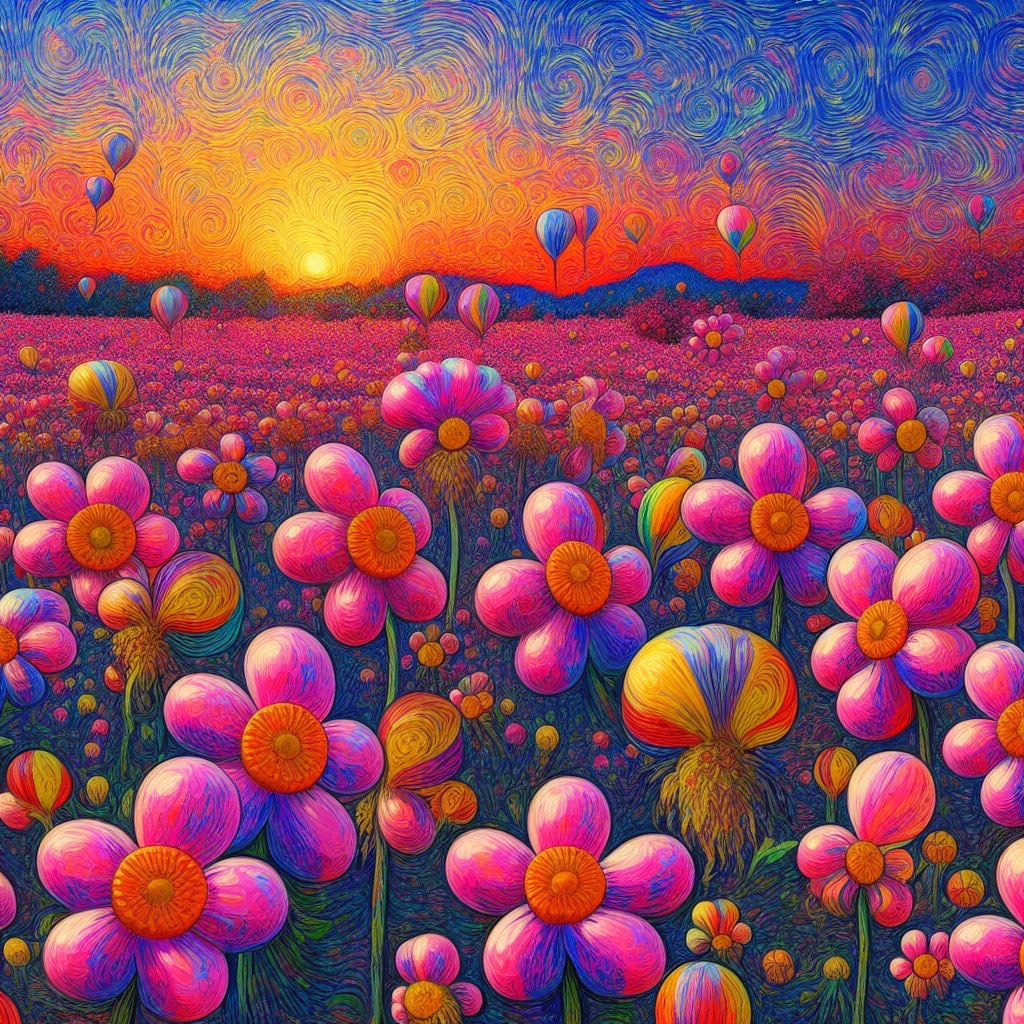 [A lush, kaleidoscopic journey through sound: every instrument rises and falls in tandem, weaving melodic and rhythmic patterns like a continuous spiral, Drums step into the next flow like a rap cadence, with each snare, tom, and cymbal bending in space and morphing dynamically, Bass is elastic but forward-moving, sometimes growling through overdrive, sometimes smooth and sliding, anchoring and propelling the groove simultaneously, Guitars are fully amplified, drenched in reverb, delay, phaser, and tremolo, twisting around synth lines and vocal echoes like ribbons of color, Synths shimmer and swell, sometimes airy, sometimes distorted, interacting with the harmonic spectrum to lift the entire mix, Vocals are layered, treated with subtle pitch modulation, echo, and harmonic doubling, integrating with instruments rather than sitting above them, FX include reverse crashes, tape flutters, phasing sweeps, and filtered