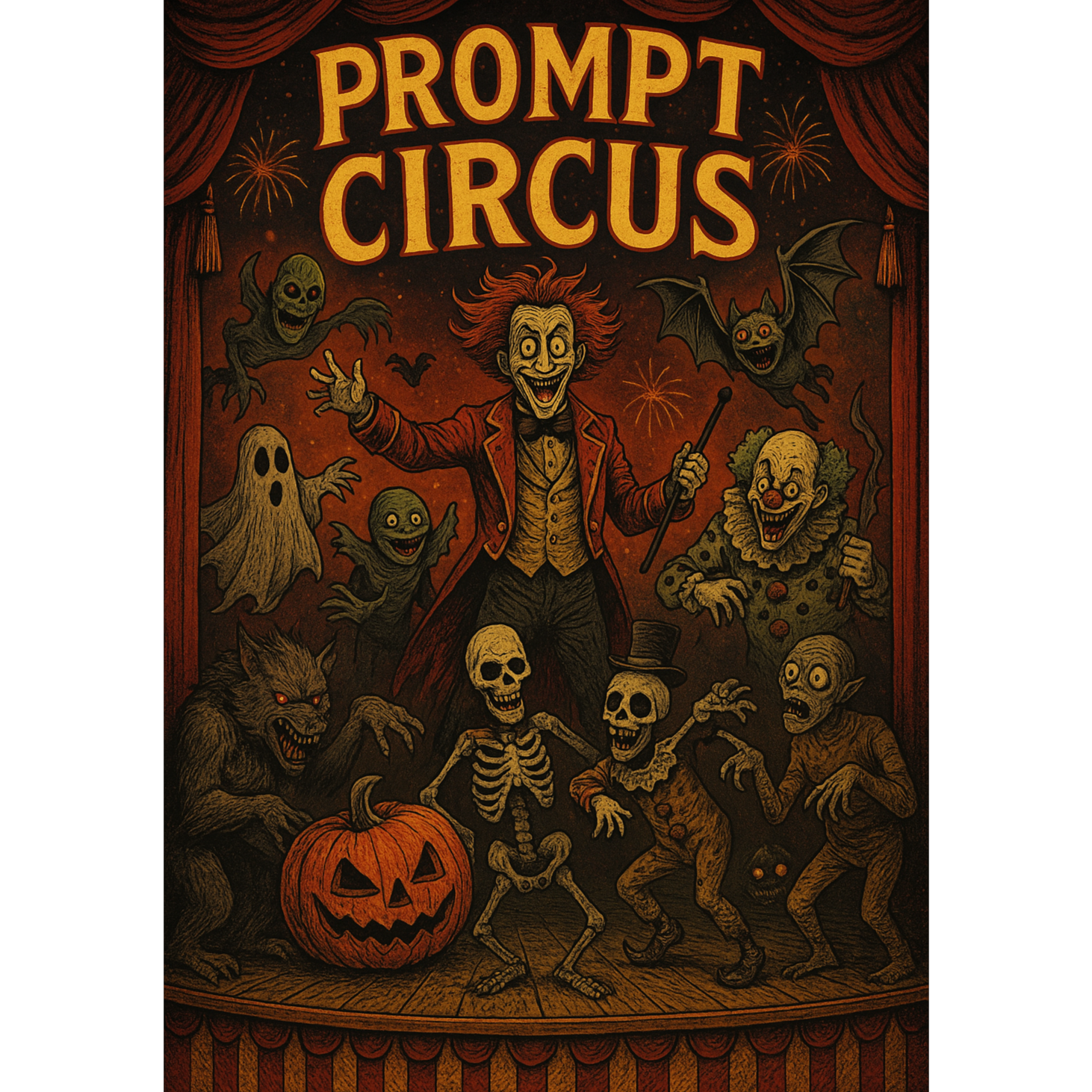 A sound that lives on the edge between comedy and madness, constantly collapsing and rebuilding itself, It feels like a circus imploding in slow motion, where every melody is both joyful and terrifying, Sudden shifts in rhythm and tempo create a sense of vertigo, as if the music itself is laughing while falling apart, Instruments twist into distorted caricatures, blending toy-like innocence with mechanical aggression, Beneath the chaos hides a strange precision, a pulse that turns noise into movement, Voices scream, whisper, and distort, not to sing but to break the idea of structure, It’s unpredictable, manic, and oddly sincere—an explosion of colors, sounds, and emotions that refuses to stay in place, The result is something absurdly human, where joy, fear, and hysteria coexist in a single breath, ‑calm, ‑minimal, ‑lo-fi, ‑romantic, ‑acoustic, ‑ambient, ‑folk, ‑ballad, ‑orchestral, ‑smooth jazz, ‑pop rock, ‑singer-songwriter, ‑country, ‑r&b, ‑classic hip-hop, ‑chillwave, ‑lounge, ‑soft pop, ‑neo-soul, ‑cinematic score, ‑atmospheric soundtrack, ‑downtempo, ‑indie pop, ‑blues, ‑reggae, ‑synthwave