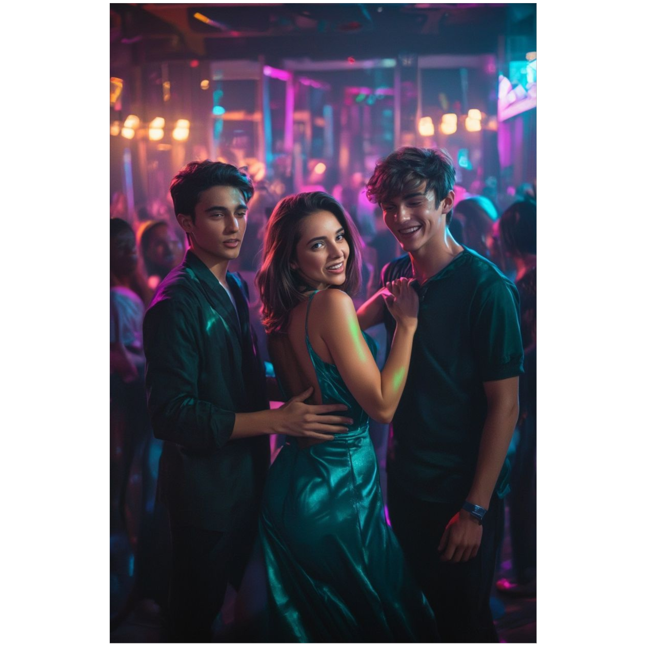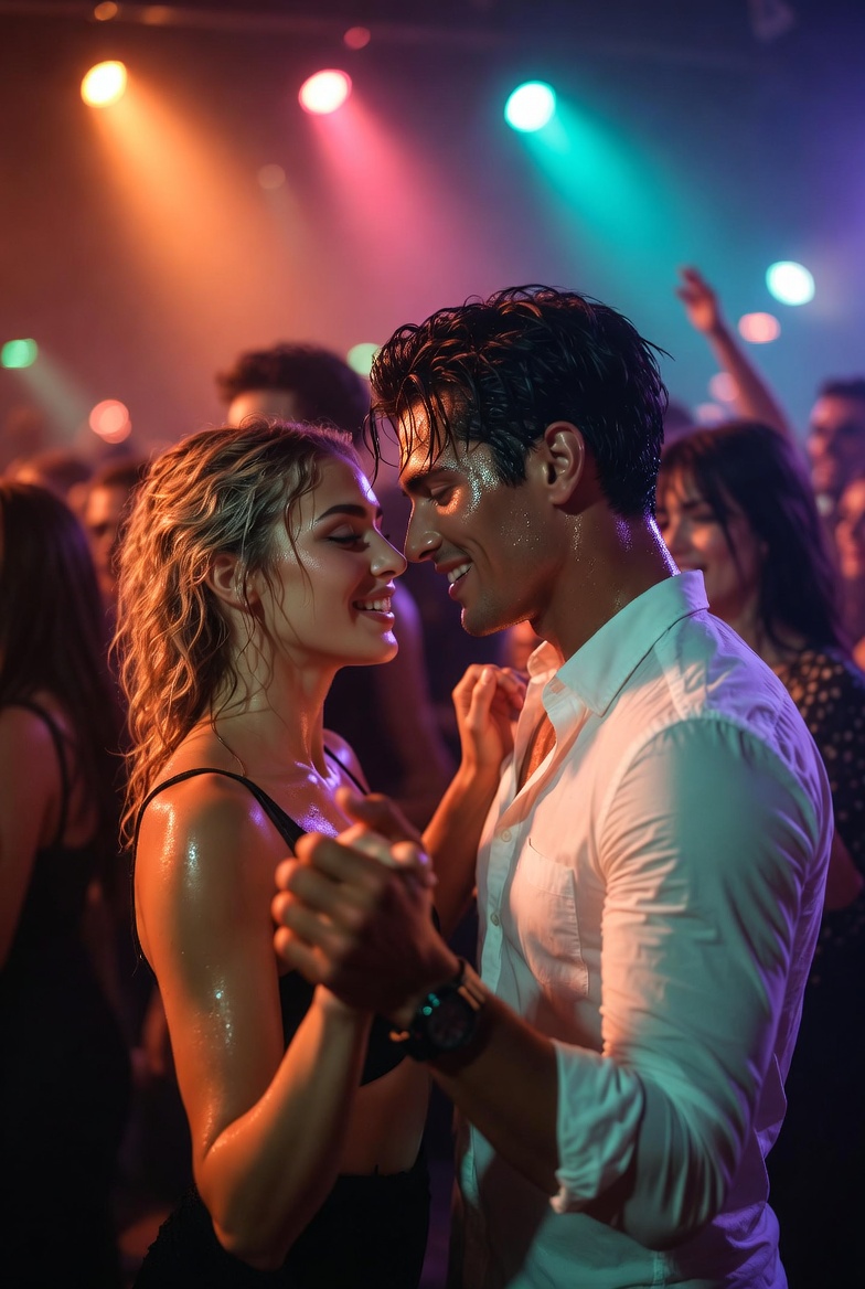Glossy 80s disco-pop with female vocals; bright rhythm guitar, springy funk bass, and a four-on-the-floor kick driving the verses, Pre-chorus adds shimmering synth pads and rising tom fills, Chorus explodes with stacked harmonies, octave lead synth, and tight claps, Middle section strips to bass, drums, and vocal ad-libs before a final, bigger chorus with extra call‑and‑response lines, female vocals, disco