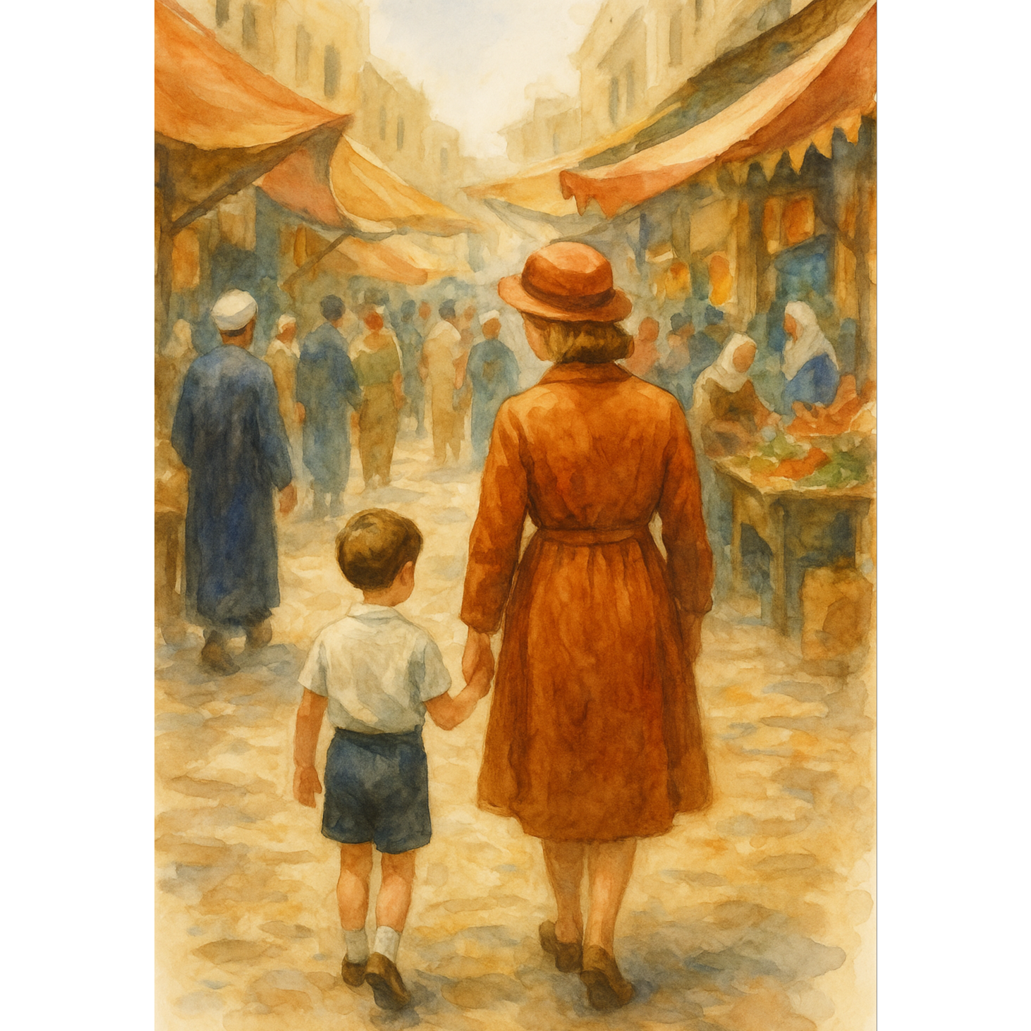 Egyptian pop, with traditional male and female chants, Male lead vocals, emotional and soulful, Arabic female vocals layered with traditional folk chants and riffs, Instrumentation includes piano, Middle Eastern percussion (dumbek, riq), Egyptian strings, and subtle electric guitar, Atmosphere is nostalgic and dramatic—evoking Cairo’s past, markets, desert wind, and memories of childhood, Chorus builds with strong rhythm; bridge introduces Arabic chant