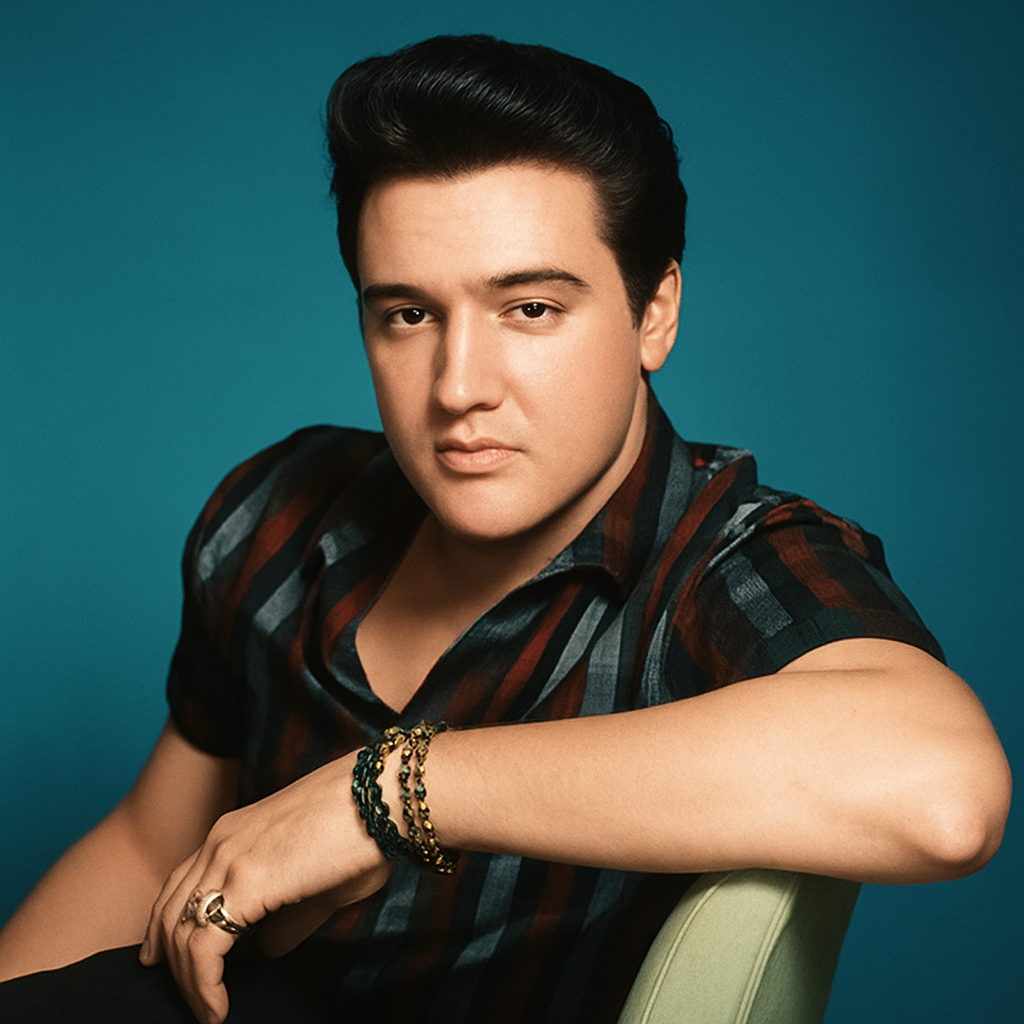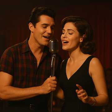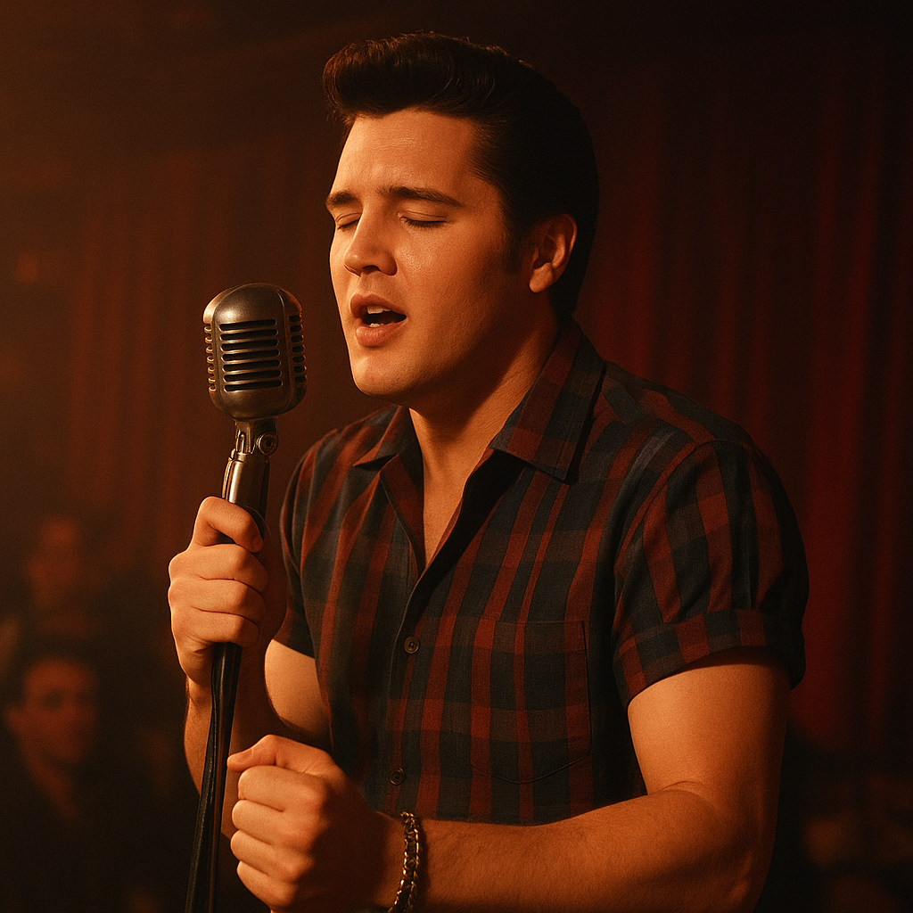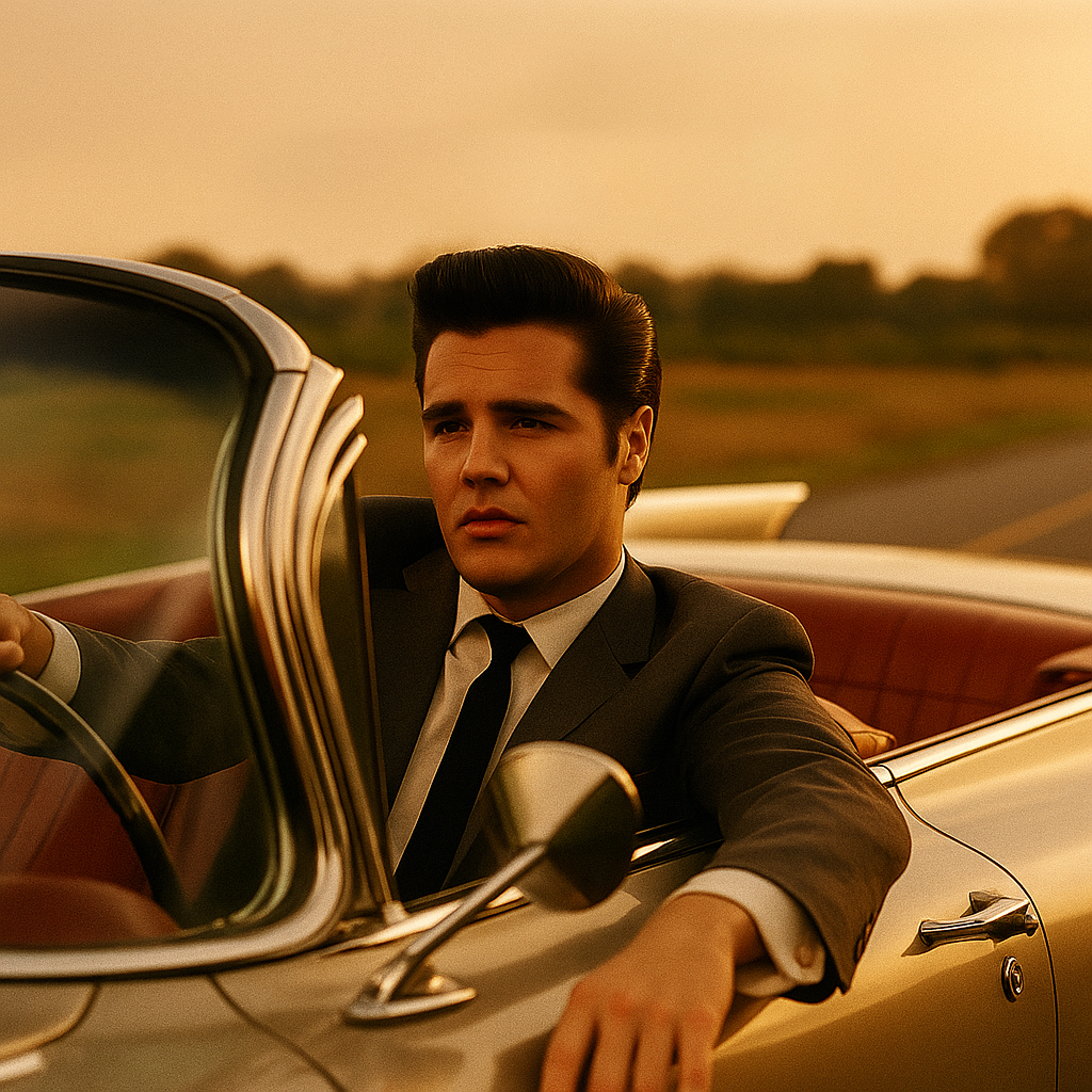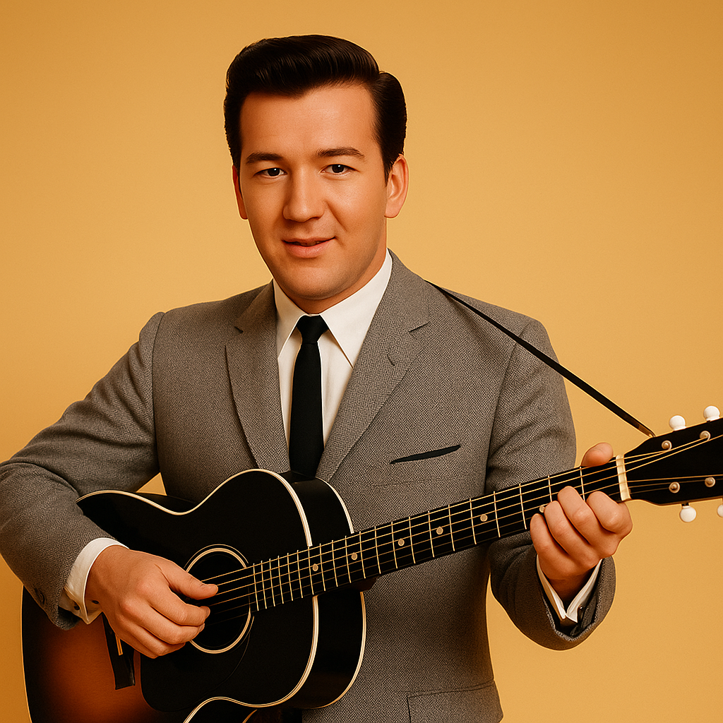 1960s pop, rock in style of ElvisPresley, Hero male vocal in style of ElvisPresley, 1960's stereo, baritone guitar bass, recorded and produced in best studio like Capitol records