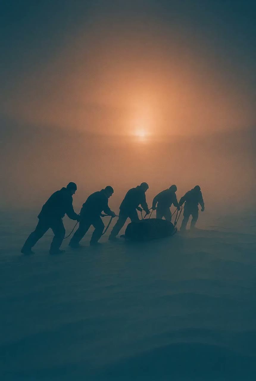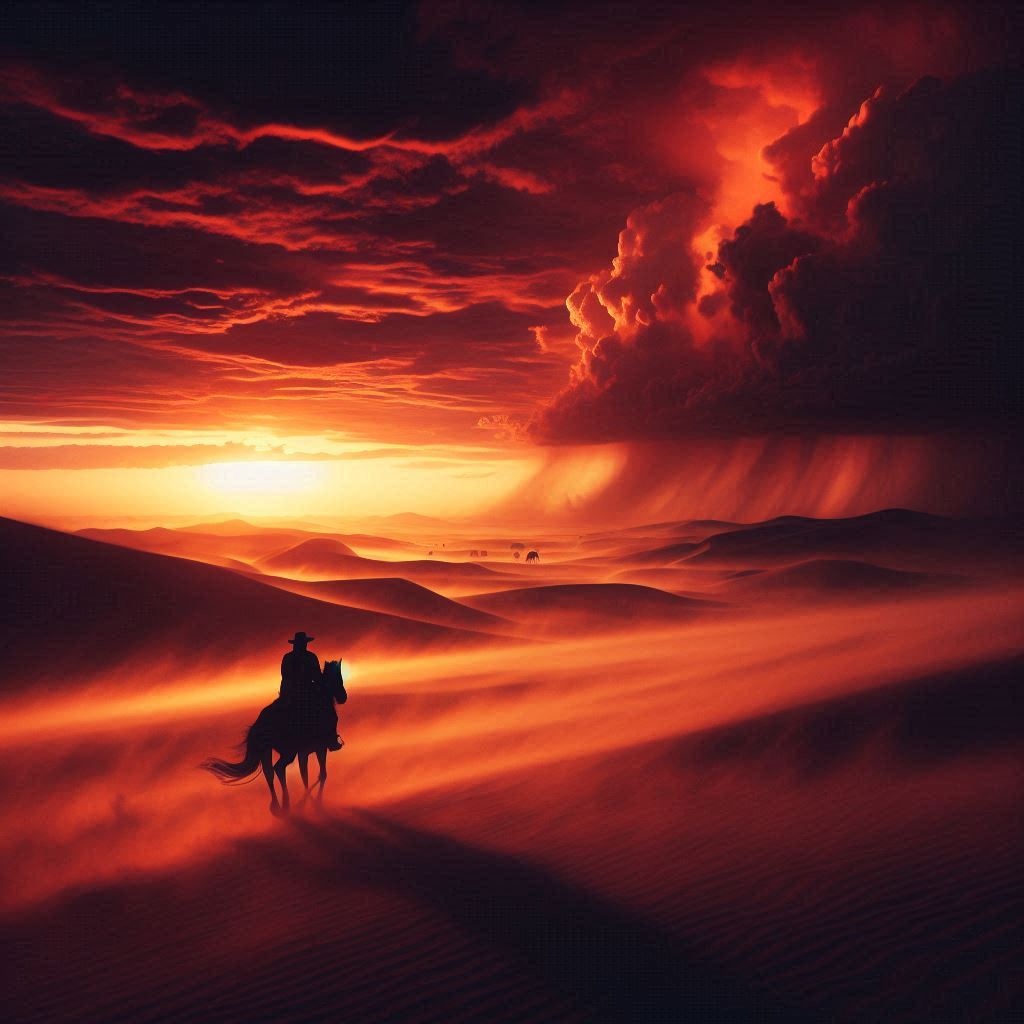 A slow, cinematic dark‑rock journey with post‑metal weight, shaped by exhaustion, resolve, and vast open landscapes, Low‑tuned, distorted guitars create a heavy, deliberate pulse that never becomes fast, supported by deep toms and earthy, African‑inspired percussion that moves like footsteps through dust, Ambient textures remain restrained but darker, with heat‑haze dissonance and shifting dynamics that create tension and a sense of drifting, Vocals are male, low, narrative, almost spoken, carrying the weight of a man pushing forward long after strength should have failed, No chorus, no repetition — only a continuous monologue moving through fragments, memory, fever, and collapse, A dissonant, bending guitar solo emerges in the mid‑section like a hallucination, The music expands into wide, cinematic space before thinning into a trembling, unresolved fade, as if the journey continues beyond the frame