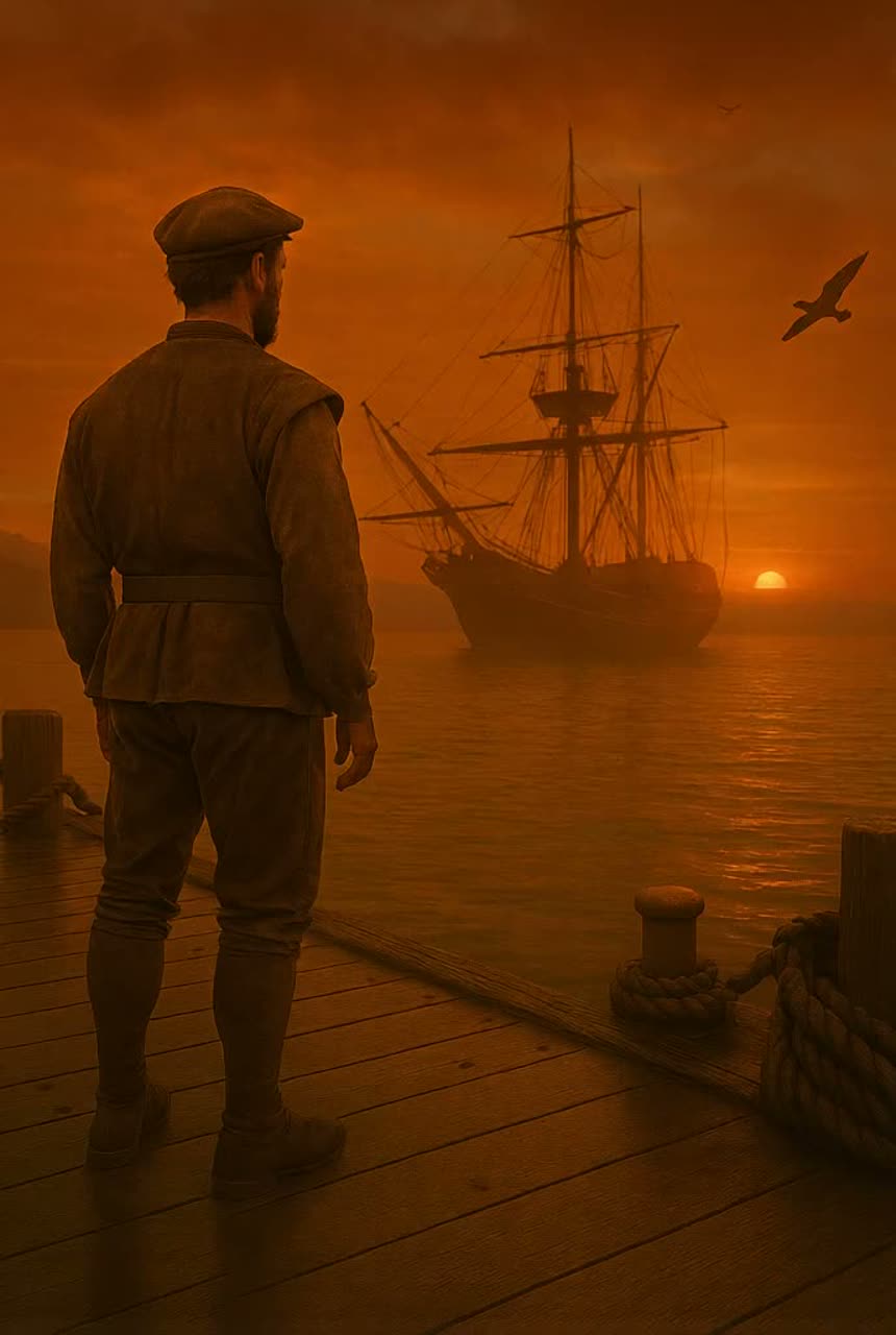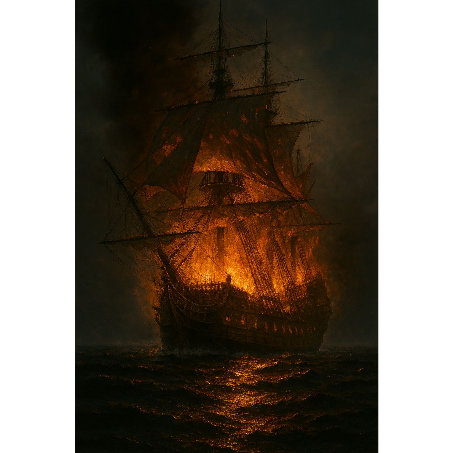 A cinematic dark rock journey with ambient textures and progressive metal tension, The track opens in D minor—ghostly guitars, deep toms, and drifting synths set a suspended mood, Vocals are low, narrative, and intimate, Chaos erupts with dissonant riffs and tremolo solos in E Phrygian, driven by galloping drums, The chorus is heavy yet melodic, echoing loss and survival, A sparse G minor bridge floats like a lifeboat on open water—minimal, haunting, The second solo in A minor mourns with aching bends and shimmering harmonics, The outro returns to the fragile intro motif, fading into silence, The fire dies, but its echo remains