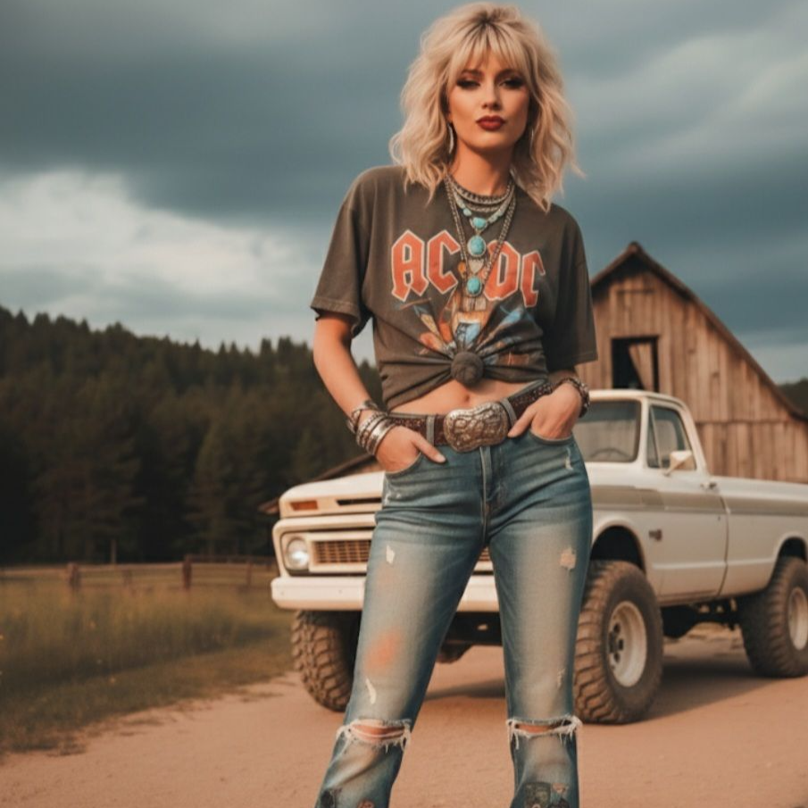 Strong, gritty female vocals with a smoky Southern rasp, Low, feminine chest voice with warm, textured tone, Clear female timbre — confident, sultry, and bold, A little grit on the edges, like she’s been singing over barroom guitars, Sharp, sassy phrasing with attitude in every line, Smooth slides between notes, but always with a tough, feminine bite, Controlled growls on power words, never harsh or masculine, Boot‑stomp rhythm in her delivery — playful, dangerous, unbothered, A hint of twang, but more red‑dirt grit than sweetness, Ad‑libs should sound wild, flirty, and fearless — a woman who knows she’s trouble and loves it, modern country, with 808 thumps and Southern-rock vibe