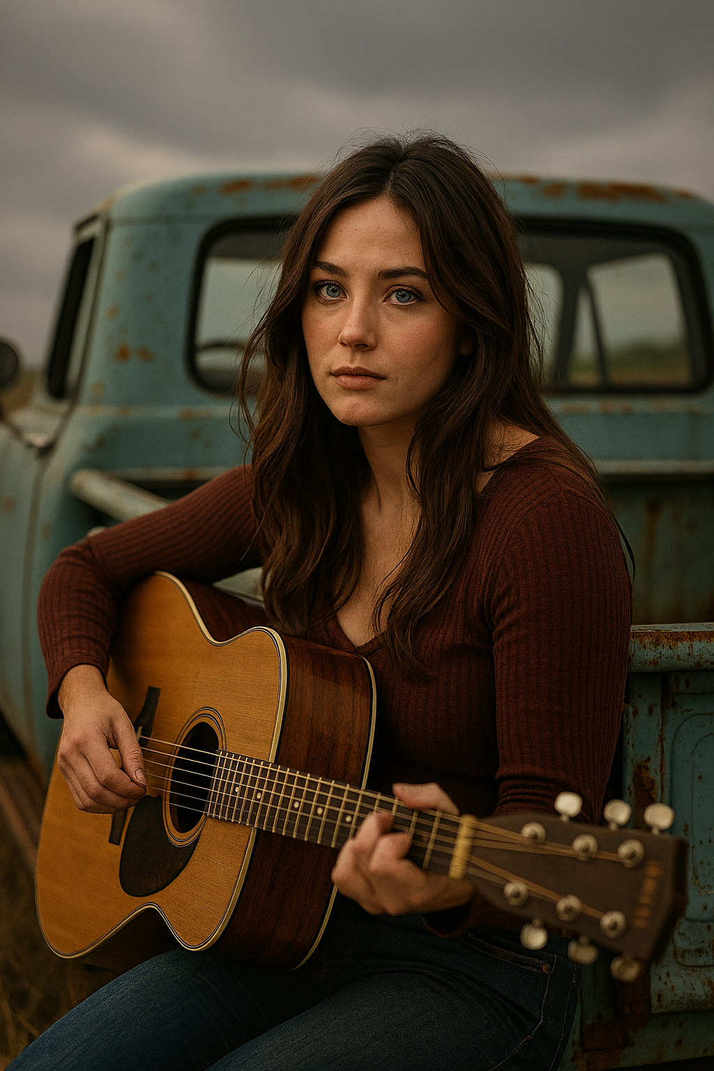 This modern country ballad opens with gentle acoustic guitar and brushed snare, showcasing a husky young Southern-twang female vocal in a rich lower register, Haunting steel guitar and fiddle add melodic color, Bold harmonies and layered strings lift the chorus, with emotional upper notes, while the bridge strips back for raw vocal focus, The song ends on a bittersweet, fading outro