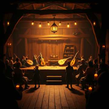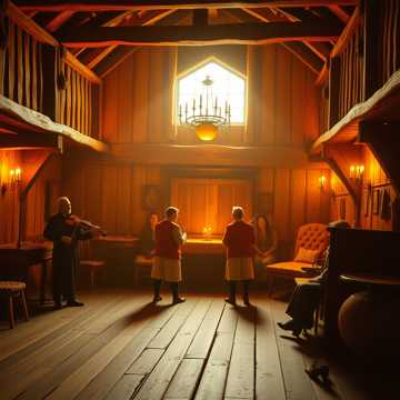 Lively medieval tavern dance, fiddle lead, hammered dulcimer, lute, hand claps, stomp rhythm, playful melody, crowd ambience subtle, fast and joyful, folk ensemble, no orchestra