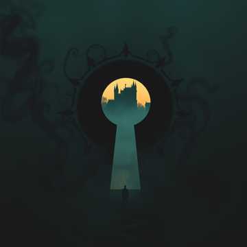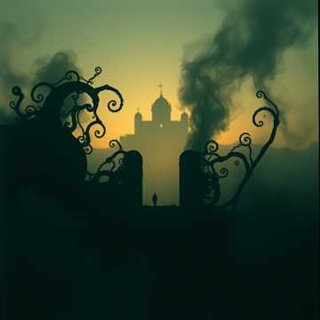 Suspense fantasy underscore, low drones, bassoons and contrabass, subtle tribal percussion, dissonant strings, sparse horn calls, creeping rhythm, ominous escalation, minimal melody