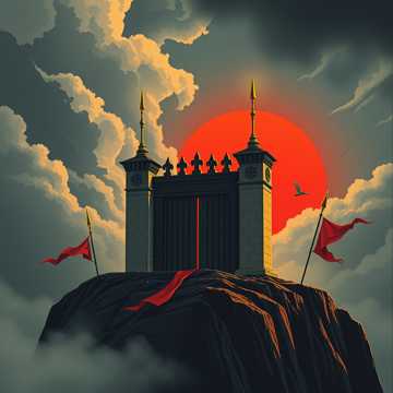 Dark majestic fantasy, deep brass, low choir “oh”, anvil hits, pounding taiko/big drums, minor-key anthem, stone hall reverb, slow powerful march, ancient kingdom vibe