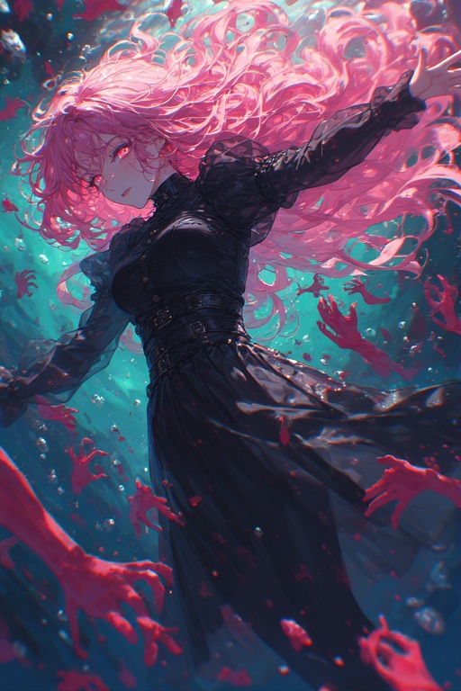 Creepy female voice, Witchcore, Folkmetal, Witch, Electronic, Grunge, Melodic, intense, Guitar, gritty, dark tone, cruel, heavy, violent, Breakbeat, very aggressive Guitar-Riffs, sinister, Horror, haunting, menacing, brutal, menacing, anger, ominous, melancholy, expressive