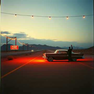 Cosmic Americana country song in E Minor at 76 BPM, romantic and yearning with nostalgic undertones, exploring shared dreams versus gritty rural reality; neo-traditional vibe with harmonic minor inflections for a haunting, introspective feel; slow, sauntering tempo like a desert night drive; featuring pedal steel guitar solos and swells for emotional depth, acoustic guitar strums, subtle mandolin or fiddle layers; warm, twangy male or female vocals with heartfelt delivery, building from intimate whispers in verses to resolute choruses; evoke dusty Southwest landscapes, starry skies, and bittersweet love with reverb on vocals and ambient coyote howls or wind effects in the background