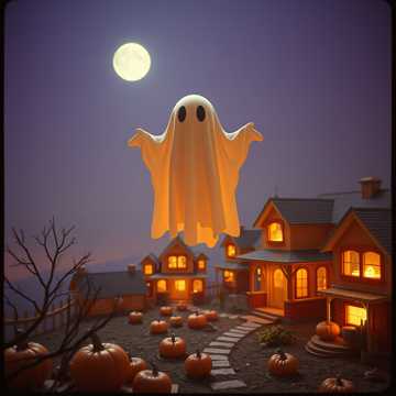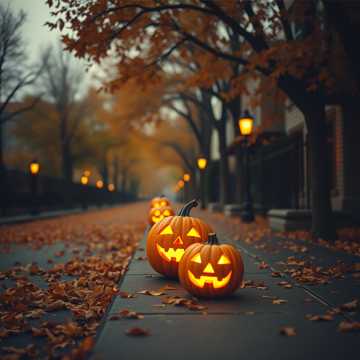 Chill lo-fi Halloween beat with warm vinyl crackle, soft hip-hop drums, and hazy synth pads, Layer in distant howls, creaky wood, and faint whispers for atmosphere, The vibe should be dreamy and spoopy, like a midnight walk past glowing jack-o’-lanterns, Vocals are mellow and almost whispered, drifting in and out of the mix like a ghostly storyteller, Tempo: slow, hypnotic groove