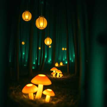 A laid-back, mysterious lo-fi groove that feels like following lantern-lit trails deep into an enchanted woodland, A steady, head-nodding beat blends warm acoustic strums with muted electric piano chords, while airy synth layers drift above like mist weaving through branches, Occasional soft flute phrases and delicate string swells add a hint of magic, creating a sound that’s both organic and otherworldly, Deep, rounded bass keeps the rhythm grounded, while subtle ambient textures — faint campfire crackles, distant chatter, and the rustle of leaves — wrap the track in a cozy yet curious atmosphere, The vibe is smooth and immersive, perfect for chilling with friends, late-night streaming, or simply letting the mind wander somewhere between reality and dream