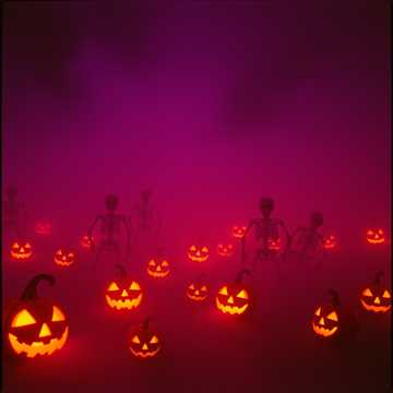 A chill lo-fi Halloween beat with dusty vinyl crackle, mellow boom-bap drums, and warm jazzy chords on electric piano, Layer in eerie textures: faint creaking doors, distant howls, soft ghostly whispers, and the occasional rattling chains, Add playful spoopy elements like bones clicking as percussion, owl hoots, and faint children’s laughter drifting like echoes, The bass should be smooth and deep, carrying a slow head-nod groove, while synth pads and vibraphone glissandos float like fog rolling through a graveyard, The vibe is cozy but haunting, perfect for a Halloween night study or stream session — equal parts spooky and fun, Imagine jack-o’-lanterns glowing, skeletons shuffling to the rhythm, and candy wrappers rustling in the background, Vocals, if any, are dreamy and ghostlike, processed with reverb and echo to blend into the mix like passing spirits, Tempo: slow-to-mid, hypnotic, with looping chill energy