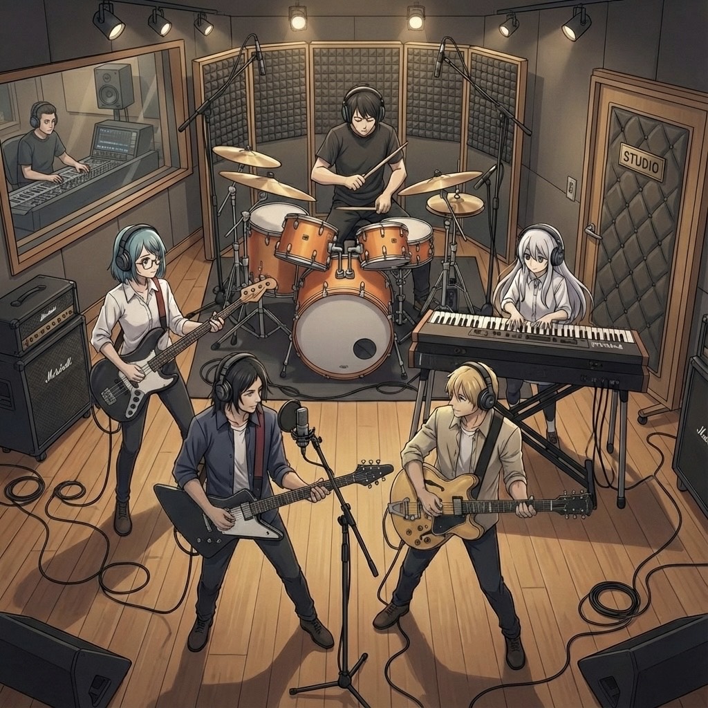[Sound] Fusion / Prog-Jazz / Studio Live Recording, Key Dm, Bpm124, HD Audio, Clean Mix, Wide Dynamics, Tight Close-Mic, Clear Stereo, Twin Electrics(L Killer KG lead / R Gibson ES comp), Rhodes+PolySynth, AtelierZ Bass, Long-Form Multi-Solo Flow