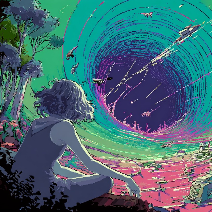 euphoric hardstyle, atmospheric, chiptune, 16-bit, anime