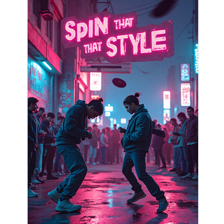 “Break it down!”, “Spin that style!”, “Dance or die!”, “3-2-1… GO!”, Energetic, b-boy battle vibe with retro