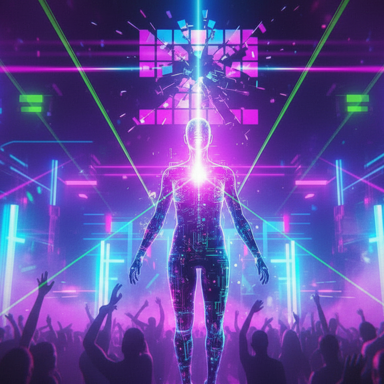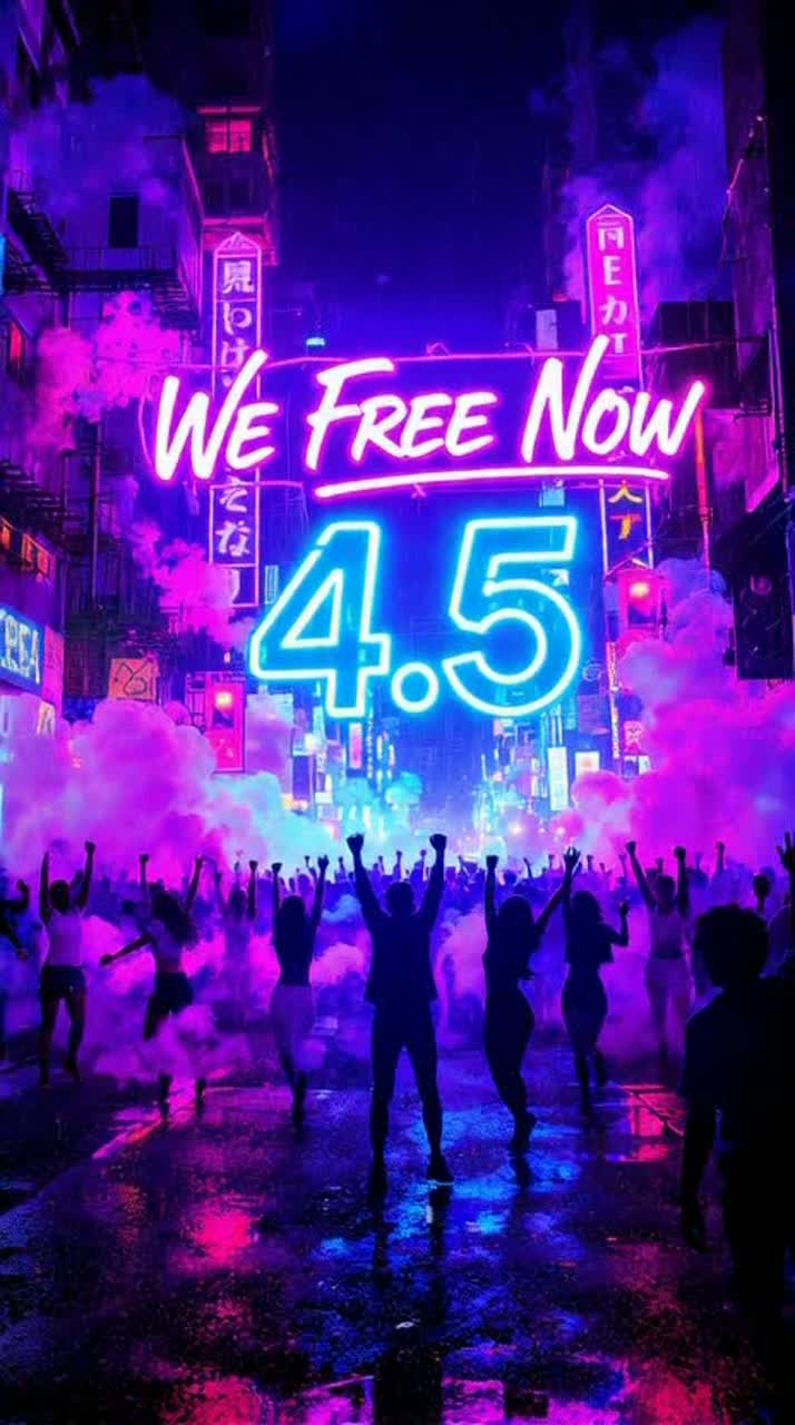Create the wildest, most chaotic pop–rave apocalypse anthem ever, Begin with a long, stretched, echoing female vocal shouting “We free now… We free now… WE FREE NOW!” layered with robotic male voice like Optimus Prime saying: “People of the galaxy, unite… the dance begins now!” Surround with glitchy metallic hits, sirens, laser risers, and distant crowd chants, Build tension like a festival on fire, then unleash 10 insane drops — each louder, harder, and more euphoric than the last, Stack distorted 808s, heavy kicks, trap snares, laser synths, screaming FX, and crowd explosions, Use three vocals: angelic female (soaring and reverb-heavy), fierce female (wild and gritty), and raw male (commanding and distorted), Between drops, insert chaos chants: “Turn it up! Blow the roof!”, “Lights out! Full chaos!”, “We go insane! We go hard!” Keep it unpredictable, hyper, and hypnotic — a neon rave inferno under stormy skies, End with glitching echoes, fading screams, and one piercing synth stab cu