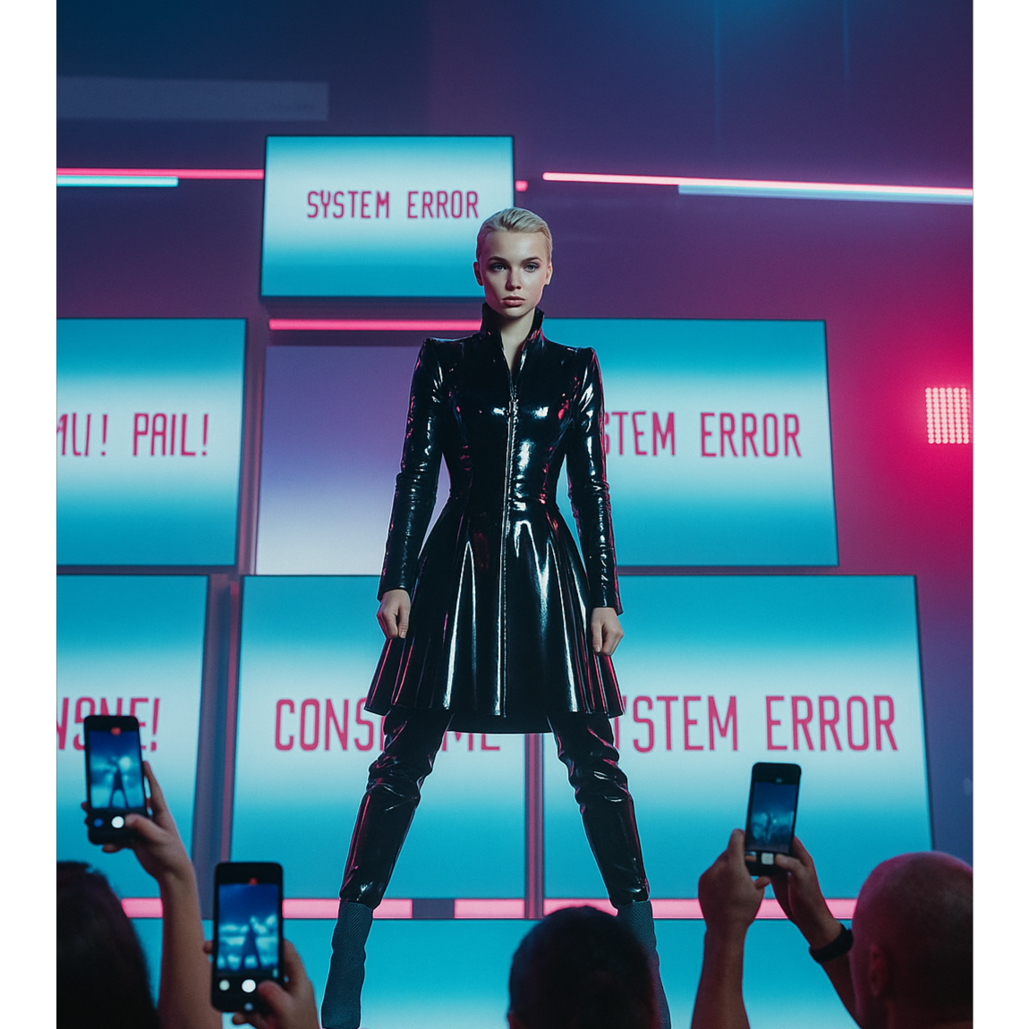 Genre: Progressive protest metal fused with satirical dance-pop and hardcore punk, Structure alternates sharply between thrash-metal verses, glossy pop choruses, and punk breakdowns, Verses: 180 BPM, distorted guitars, double-kick drums, shouted vocals, raw mix, Choruses: 110 BPM, clean funk guitars, disco bassline, claps, auto-tuned cheerful tone, fake crowd energy, Breakdown: half-time hardcore drop with gang shouts and feedback bursts, Bridge: filtered lo-fi guitars, spoken vocals, ambient bass drone, Final chorus: merges metal aggression with pop euphoria, then collapses in distortion, Vocal: Male tenor switching between snarled shouting, sarcastic clean singing, and poetic speech, Mood: satirical, manic, rebellious, mocking happiness hiding dread, Mix: alternates analog grit and digital gloss, extreme dynamic swings, wide stereo, heavy compression for impact