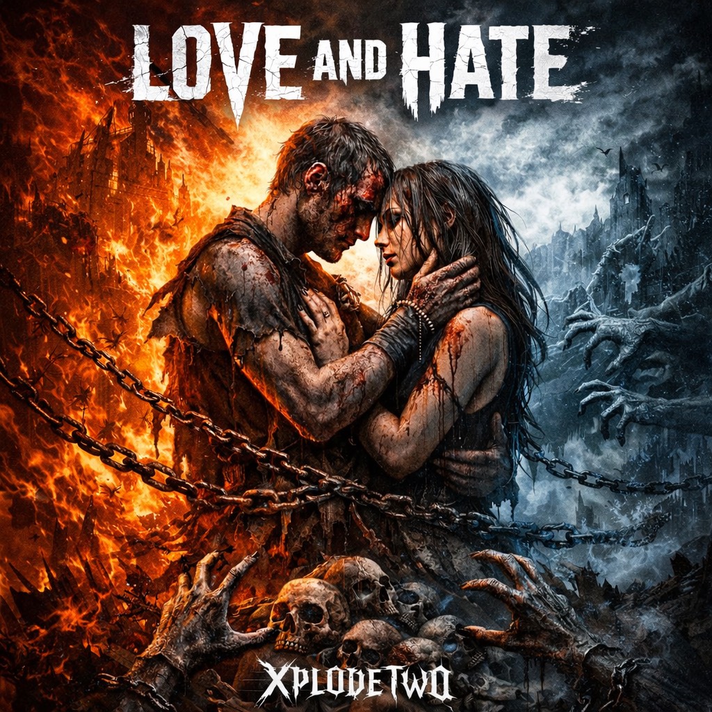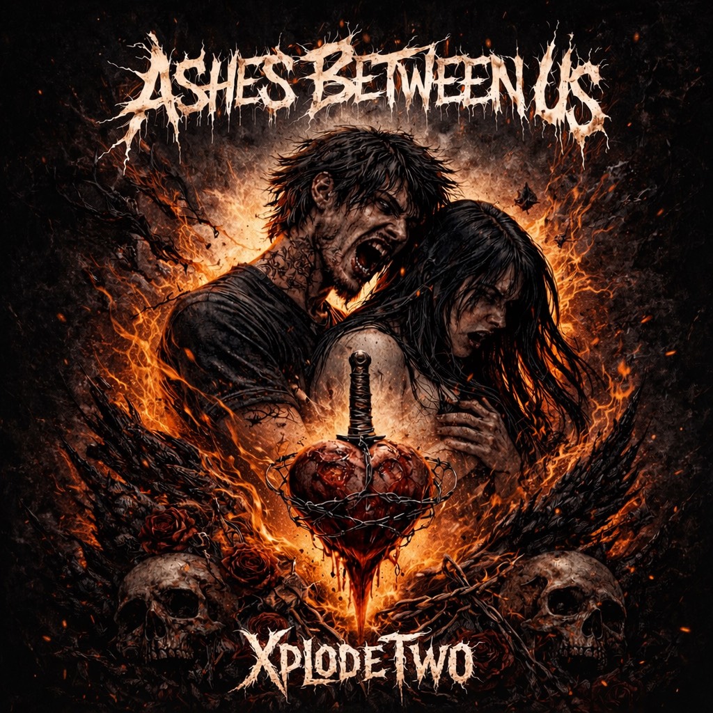 Dual male and female vocals trading lines and screams over dramatic emo guitars and a huge orchestral backdrop, Start with tense strings and clean arpeggios, then explode into blast beats, chugging rhythm guitars, and soaring violin countermelodies, Choruses stack harmonies and tortured belts, bridge drops to piano and low strings before a final, full-band scream-out ending, orchestral, male vocals, screamo, dramatic