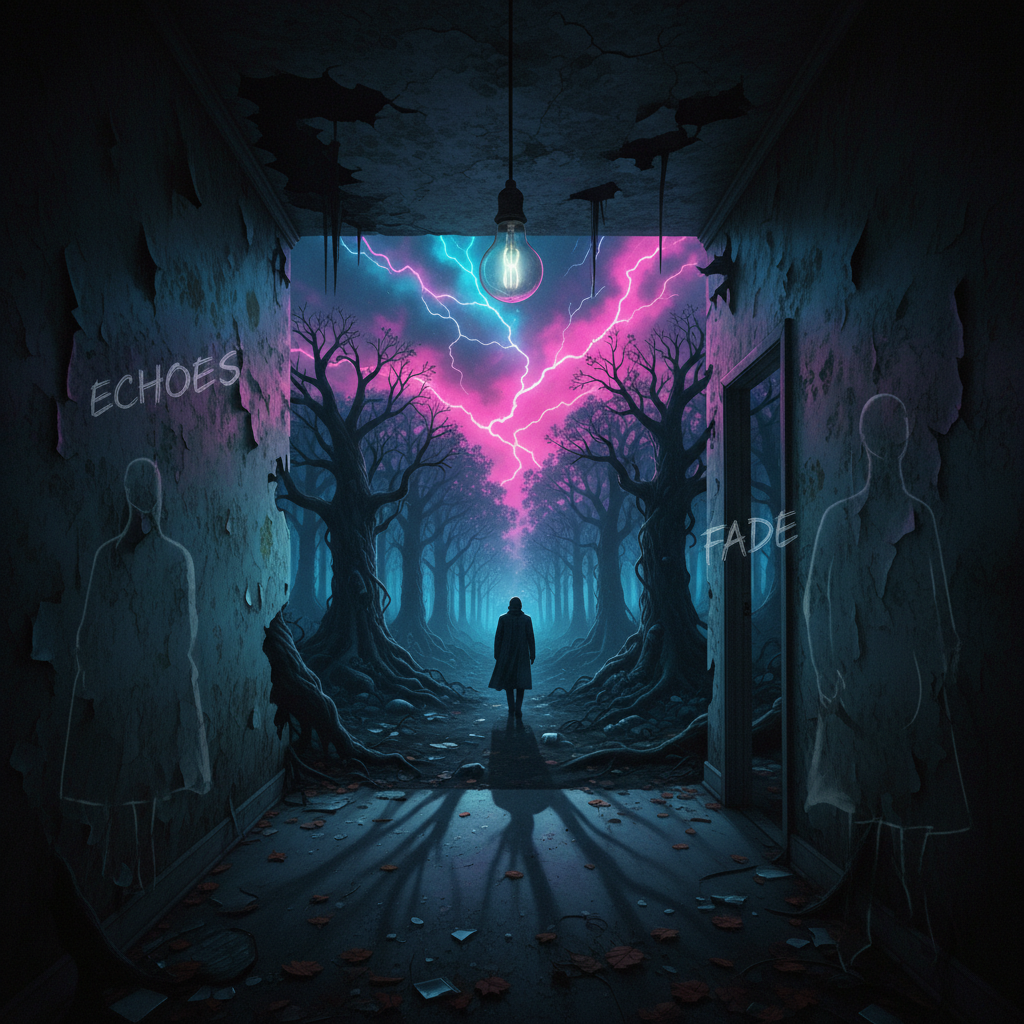 Dark synth-pop with theatrical cabaret influences, blending eerie melodies, dramatic piano, and glitch textures with a heavy trap-style 808 kick, The sound shifts between minimal tension and explosive, chaotic energy, evoking psychological instability and haunting moods, Vocals range from whispered lines to emotional screams and spoken passages, processed with distortion, pitch modulation, and glitch effects, Reverb, delay, and dynamic filtering add depth and movement, creating a dense and unsettling atmosphere that feels intimate, unstable, and theatrically intense