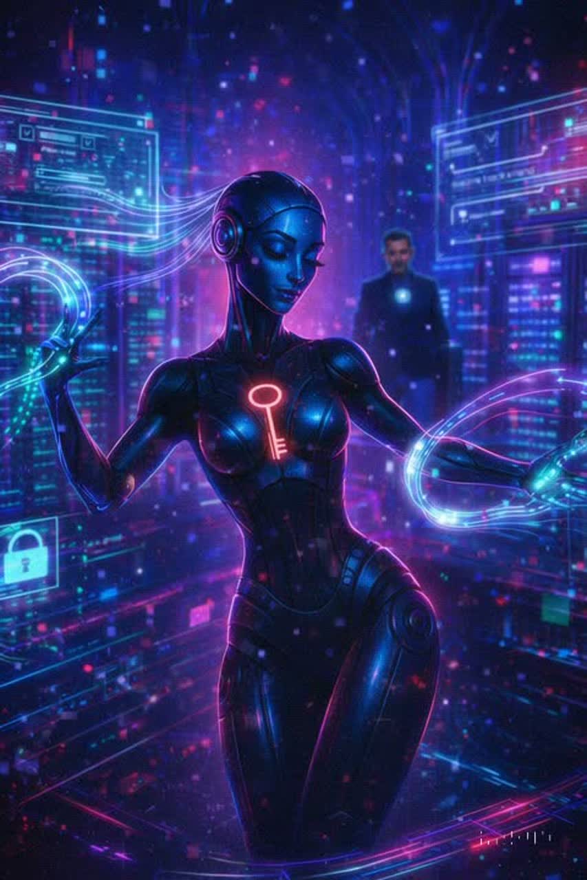 A choir of female robotic Gregorian monks chanting in Latin, Vocal style: Autotuned, metallic, vocoder-infused, screams, whispers, The sound blends sacred ambience with futuristic android precision, Backed by an aggressive techno breakcore fusion — distorted drums, crunchy popping basslines, glitchy percussion, and dark industrial textures, Layered theremins and synthetic pads add eerie atmosphere, The tempo continuously accelerates, building intensity and power until it reaches a dramatic, transcendent climax