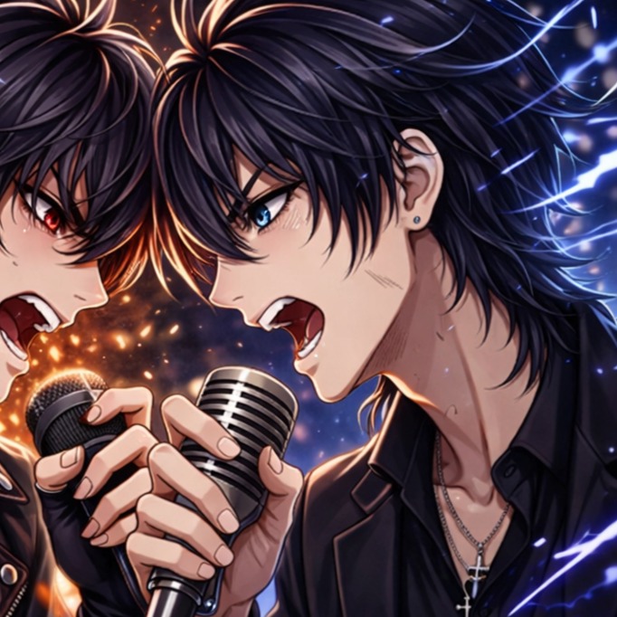 Hard rock with emotional intensity, fast tempo around 140-160 BPM, Japanese lyrics mixed with English phrases, androgynous male vocal, controlled and steady tone with subtle emotional cracks, powerful but restrained delivery, clear articulation, slightly breathy at times, introspective and conflicted mood, distorted guitars, driving drums, strong bass, dynamic but not chaotic, emotional but not fully breaking, contrast between control and intensity
