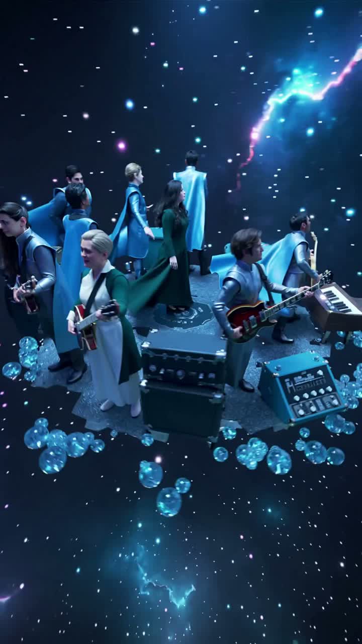 1, The Choir Breakdown: Heavy instruments drop out for an acapella vocalization, 2, The Instrumental Ascension: A melodic guitar solo rises out of the choir, leading into a fast keyboard run, • Vibe: Cinematic, Theatrical, Space-Age, and Harmonically Rich