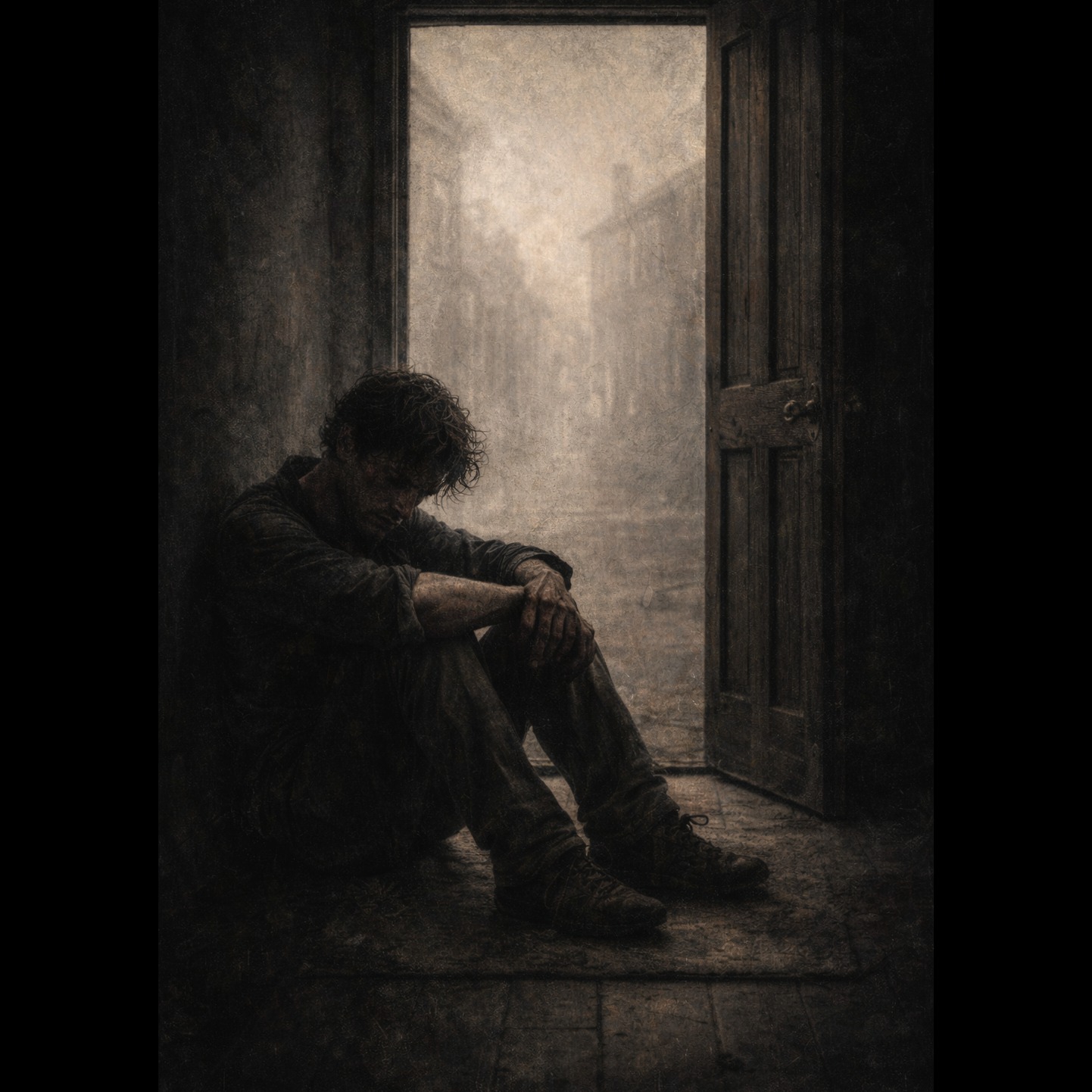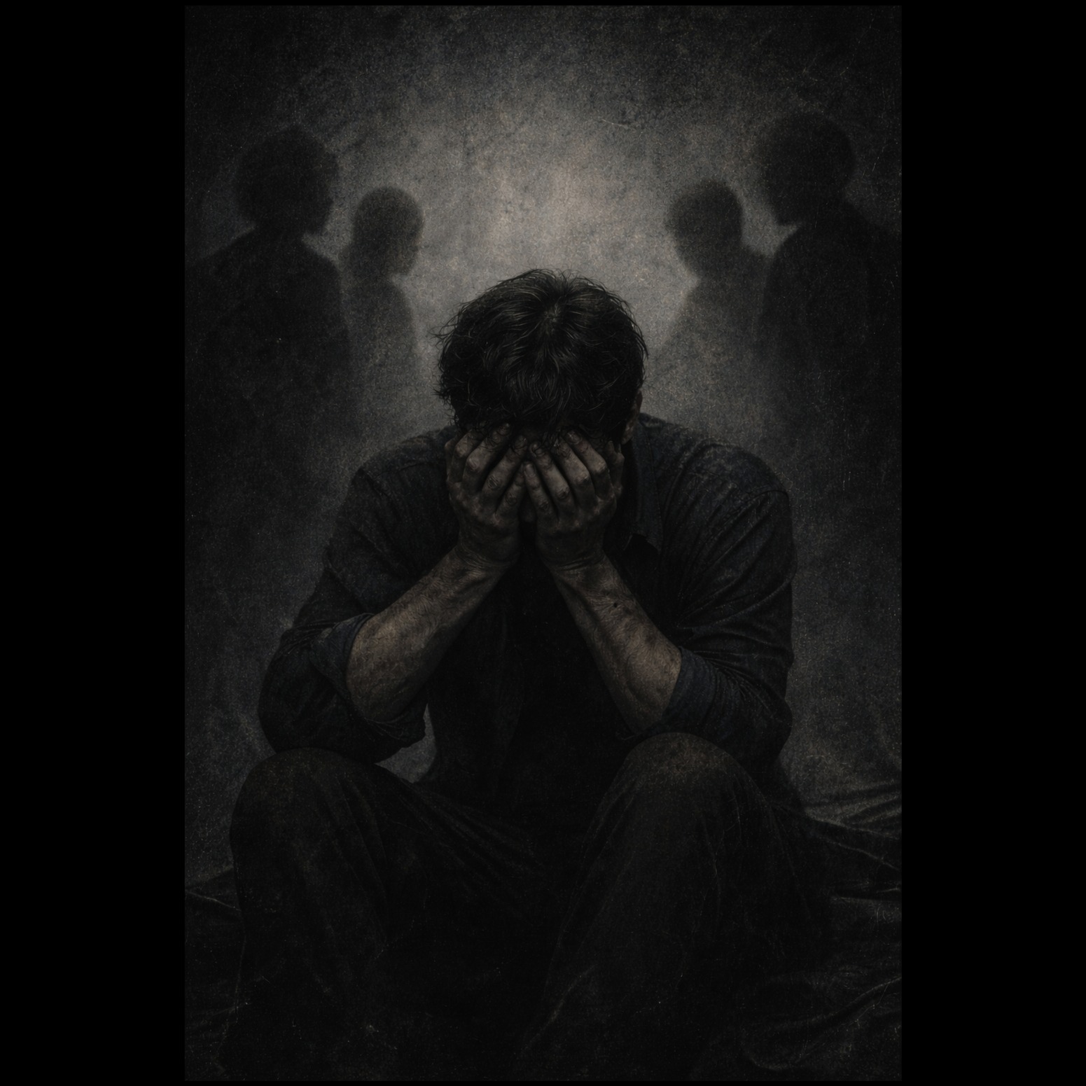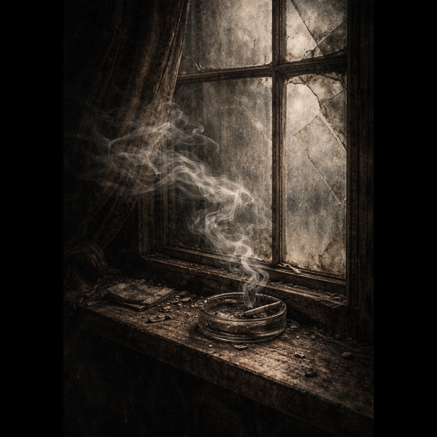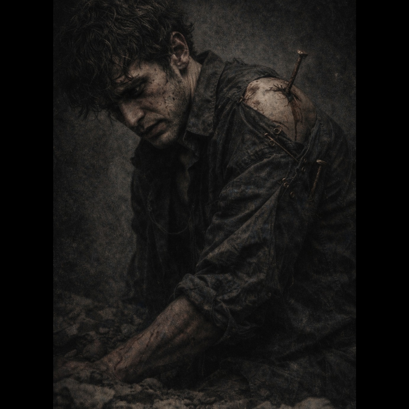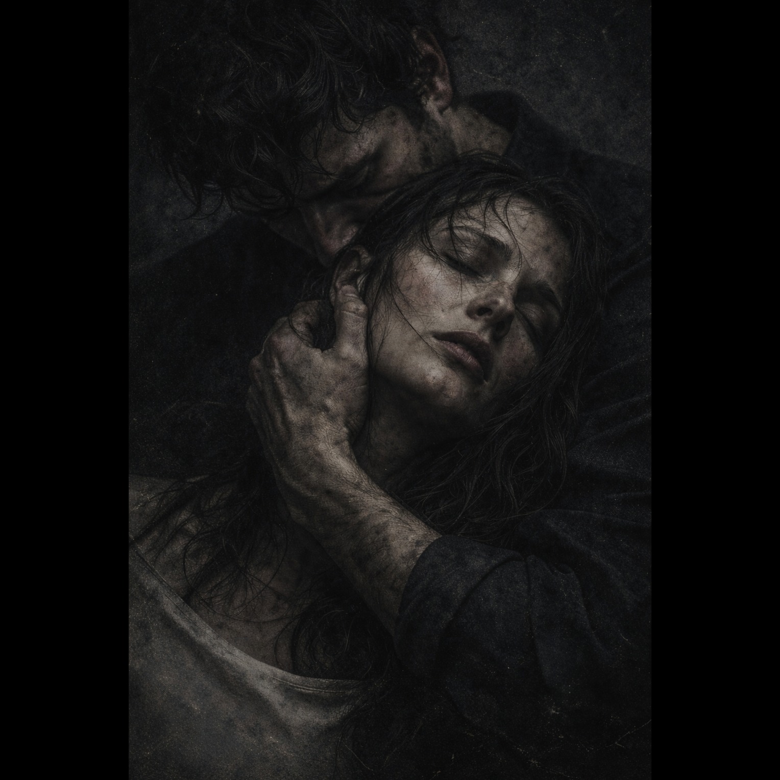 Bass: a slow, dissonant line played in descending loops, as if falling into a bottomless well; Guitars: noisy pads, scattered notes with glacial delay, sometimes screaming like suppressed feedback; Drums: a very slow, almost martial, mechanical beat with marked silences between each hit; Textures: friction, filtered air breath, distant metallic urban ambient recordings (squeaking, echoing footsteps, muffled sirens); Overall emotion: a feeling of being in decline, conscious but unable to move—a waiting without deliverance