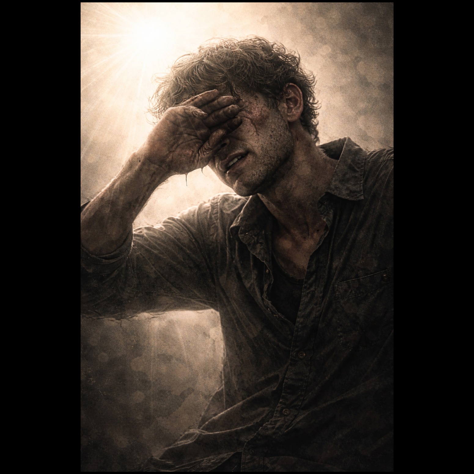 Gothic rock, post-punk, experimental art rock, atmospheric and theatrical alternative metal, with a raspy French baritone voice, echoing spoken verses, haunting melodic choruses, analog warmth, a clear electric guitar with subtle modulation, a deep melodic bass (post-punk style), an organic drum kit evolving from a minimal pulse to a full rhythm, dominated by toms, multiple layers of psychedelic guitars (phaser, reverse delay, shimmer reverb), analog synth pads, a sub-bass pulse in the final section, a cinematic, introspective and slow-burning atmosphere, both dark and bright, an atmosphere of emotional numbness and inner disintegration, evoking emotional exhaustion, the atmosphere is oppressive and tender at the same time, like a flash too bright to escape, themes of benevolent violence, erasure of identity and emotional suffocation, Production: warm analog saturation, wide stereo field, smooth transitions, strong dynamic contrast, immersive and breathing mix, cinematic depth