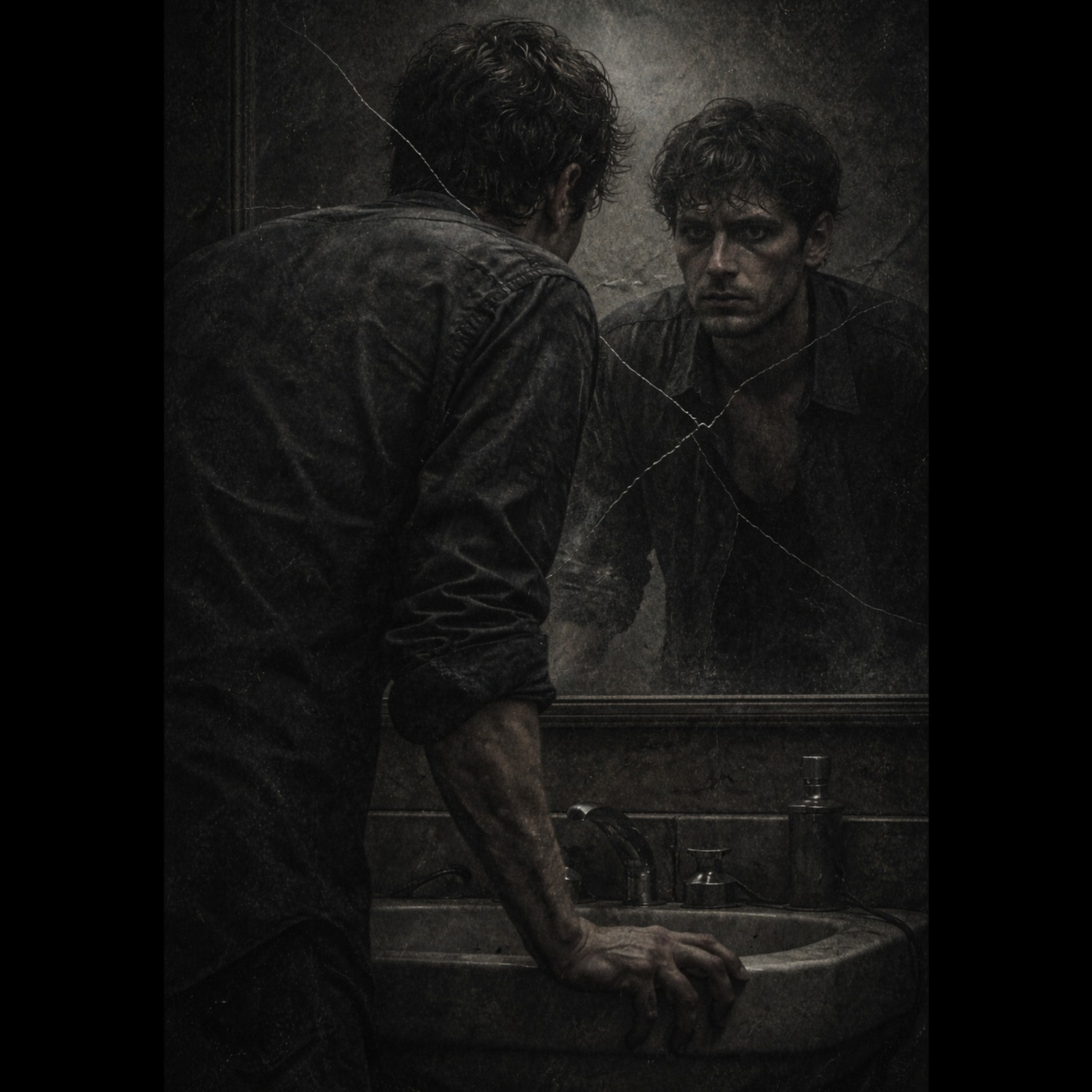 Gothic rock, post-punk, experimental art rock, atmospheric and theatrical alternative metal, featuring a haunting and poignant baritone voice, dynamic build-up, analog warmth, clean electric guitar with tape noise and subtle modulation, deep melodic bass (post-punk style), organic drums evolving from a minimal pulse to a full rhythm, dominated by toms, multiple layers of psychedelic guitars (phaser, reverse delay, shimmer reverb), analog synth pads, distant backing vocals, sub-bass pulse in the final section, cinematic, introspective, and slow-burning atmosphere, both dark and luminous, A somber mood, dramatic spoken-word verses, and an intense melodic chorus, Inspired by themes of projected guilt, emotional manipulation, and the collapse of identity, Production: warm analog saturation, wide stereo field, long evolving reverbs, smooth transitions, strong dynamic contrast, immersive and breathing mix, cinematic depth