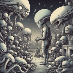 whisper male and woman vocals, silent orchestral, cinematographic, epic, violin, piano, drums, whisper, alien scream