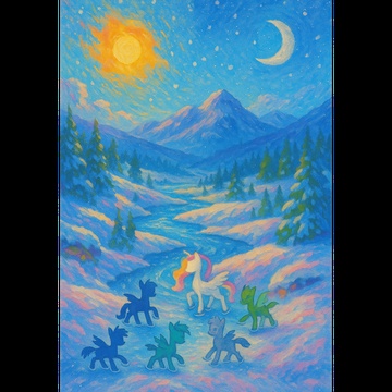 A celestial fusion of baroque pop, dreamwave, and magical orchestral electronica, Inspired by Rarity’s elegance, Princess Bianca’s divine charisma, and Pinkie Pie’s joyful spontaneity, The sound feels like moonlight reflected in silk — elegant yet mischievous, emotional yet radiant, ✨ Mood: glamorous, playful, intimate, majestic, otherworldly