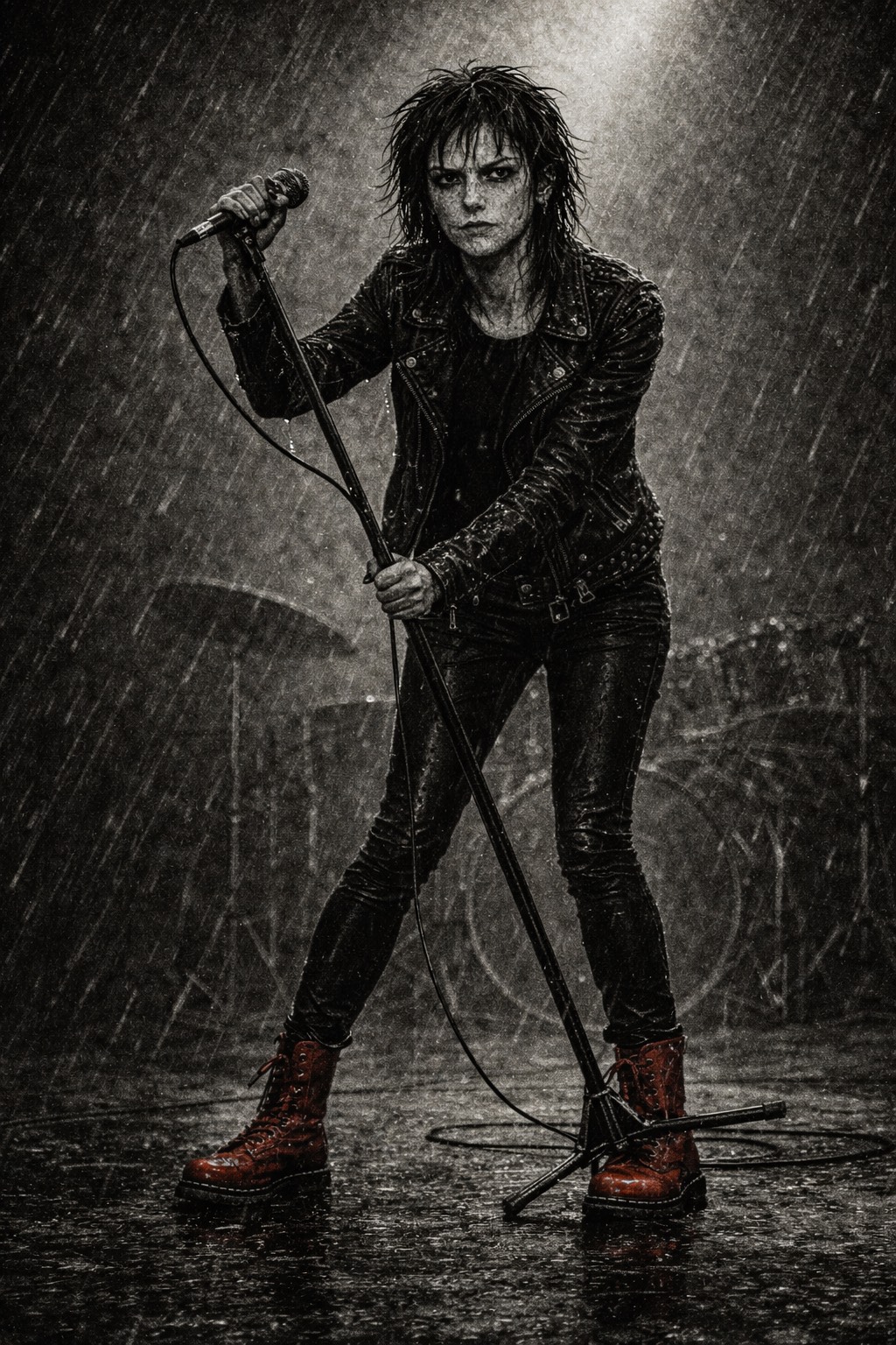 This track blends Emo-Punk’s raw emotional edge with Electro-Industrial’s mechanical aggression, Britpop’s melodic catchiness, Shoegaze’s dreamy haze, Gothic Dance’s dark rhythm, and Industrial Synth-Wave/Alt-Rock’s gritty synths, It features heavy, distorted synth basslines pulsing like a heartbeat on steroids, mechanical drum loops with glitchy breaks, whispered-to-snarled male vocals layered over ethereal female harmonies, and static noise textures crackling like old radio interference, Tempo starts at 140 BPM for an energetic, danceable EDM vibe—Midtempo 128 BPM | Duet: Male - Deep Dark German Voice [Confident Masculine → Aggressive Shouts] / Female - British Accent [Vulnerable Feminine → Sarcastic Spoken] |