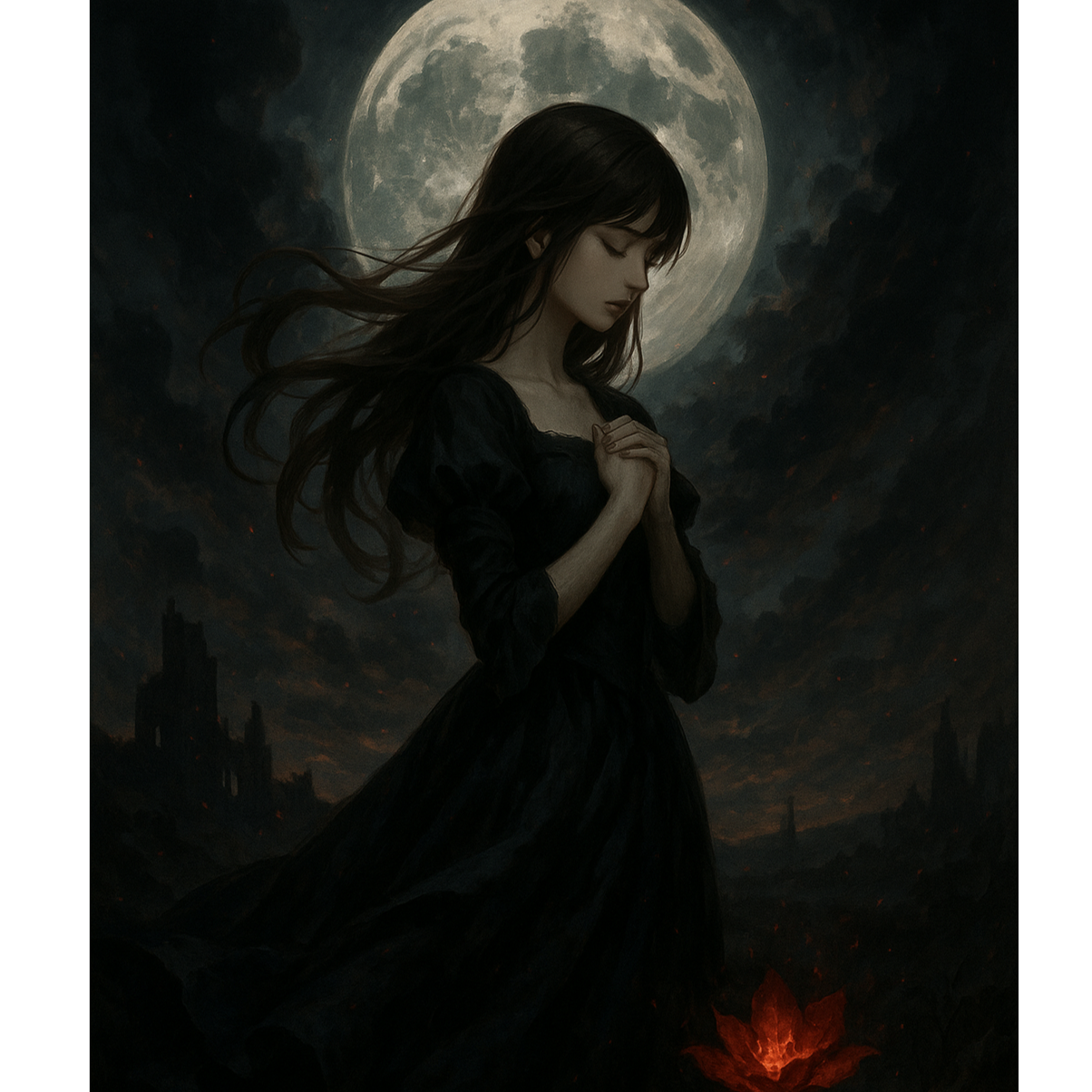 Dark symphonic rock with gothic and mysterious atmosphere, Emotional Japanese female vocal with haunting harmonies and cinematic orchestra, Deep strings, choir, and epic drums with a dramatic build-up, Expresses fate, sacrifice, and light within darkness, Tempo around 100 BPM, minor key, epic and melancholic mood, #dark #epic #femalevocal #japanese #orchestral #dramatic