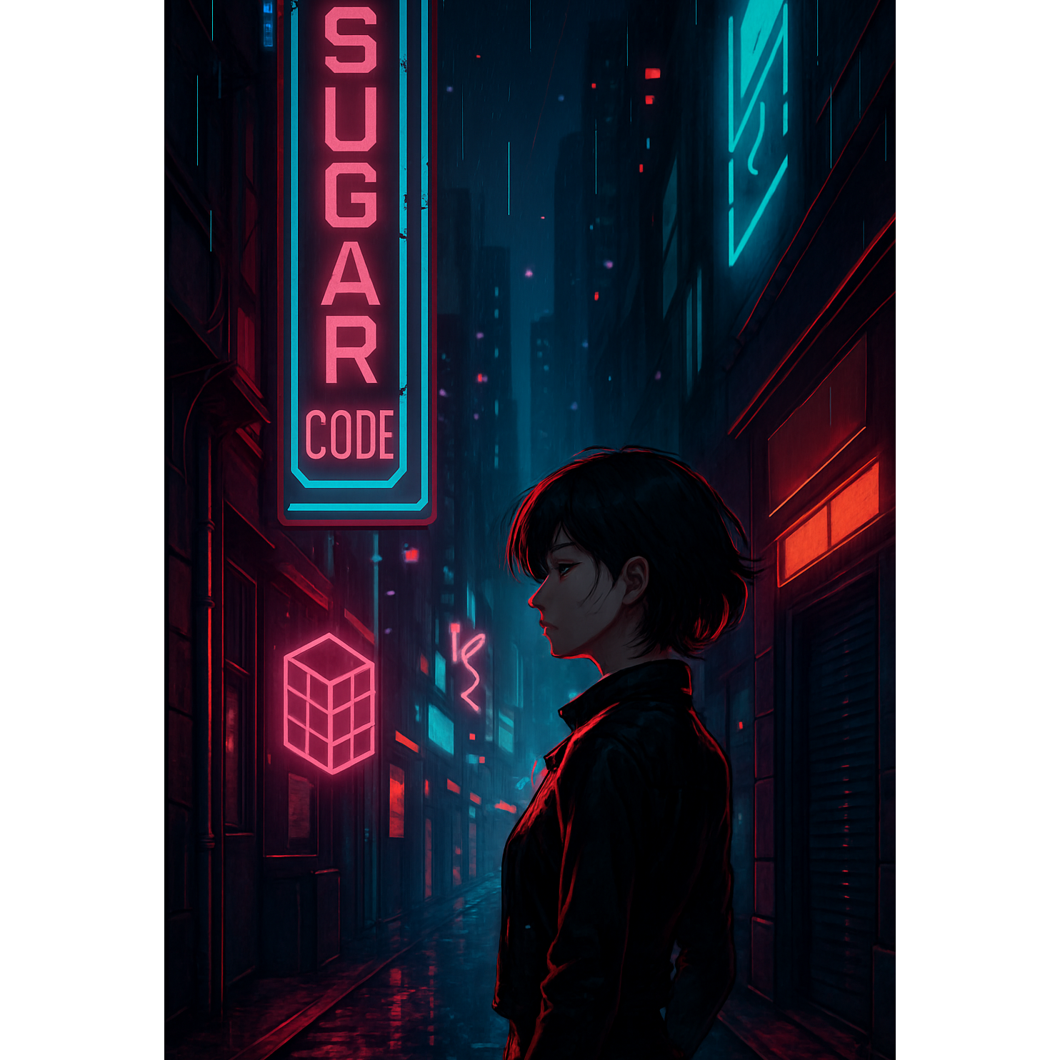 Japanese female vocal dark pop rock song (~152 BPM), Cool, modern, and stylish — not cute, not romantic, Focus on sleek rhythm, driving bassline, and syncopated drums, Offbeat hi-hat with dynamic groove, Minimal synth textures, clean but sharp guitars, deep bass, Mood: mysterious, confident, emotionally restrained but slightly seductive, Vocal: calm, controlled female voice with soft huskiness; cool tone, understated emotion, Structure: Verse1 → Pre-Chorus → Chorus → Verse2 → Pre-Chorus → Chorus → Bridge → Double Chorus (second chorus changes lyrics and expands), Lyrics: use the provided “Sugar Code (re:Cool ver, )” lyrics exactly, Length: around 4 minutes