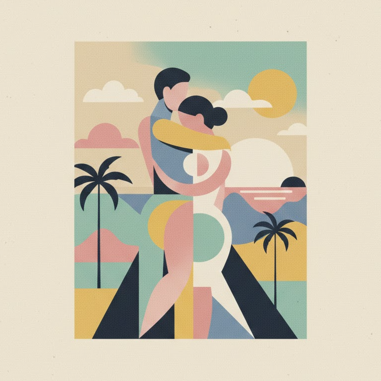 Slow, smooth Rhodes and lush pads weave a vibey R&B base, while syncopated drums and mellow bass establish a sultry groove merging smooth jazz with chanson française, Soft orchestral flourishes and tasteful brass stabs add depth, as a deep contralto lead glides above rich harmonies and layered baritone–contralto vocals in densely atmospheric choruses, the song structure is dynamic and with a with a rich variety of musical arrangements, intro with spoken words with female vocal