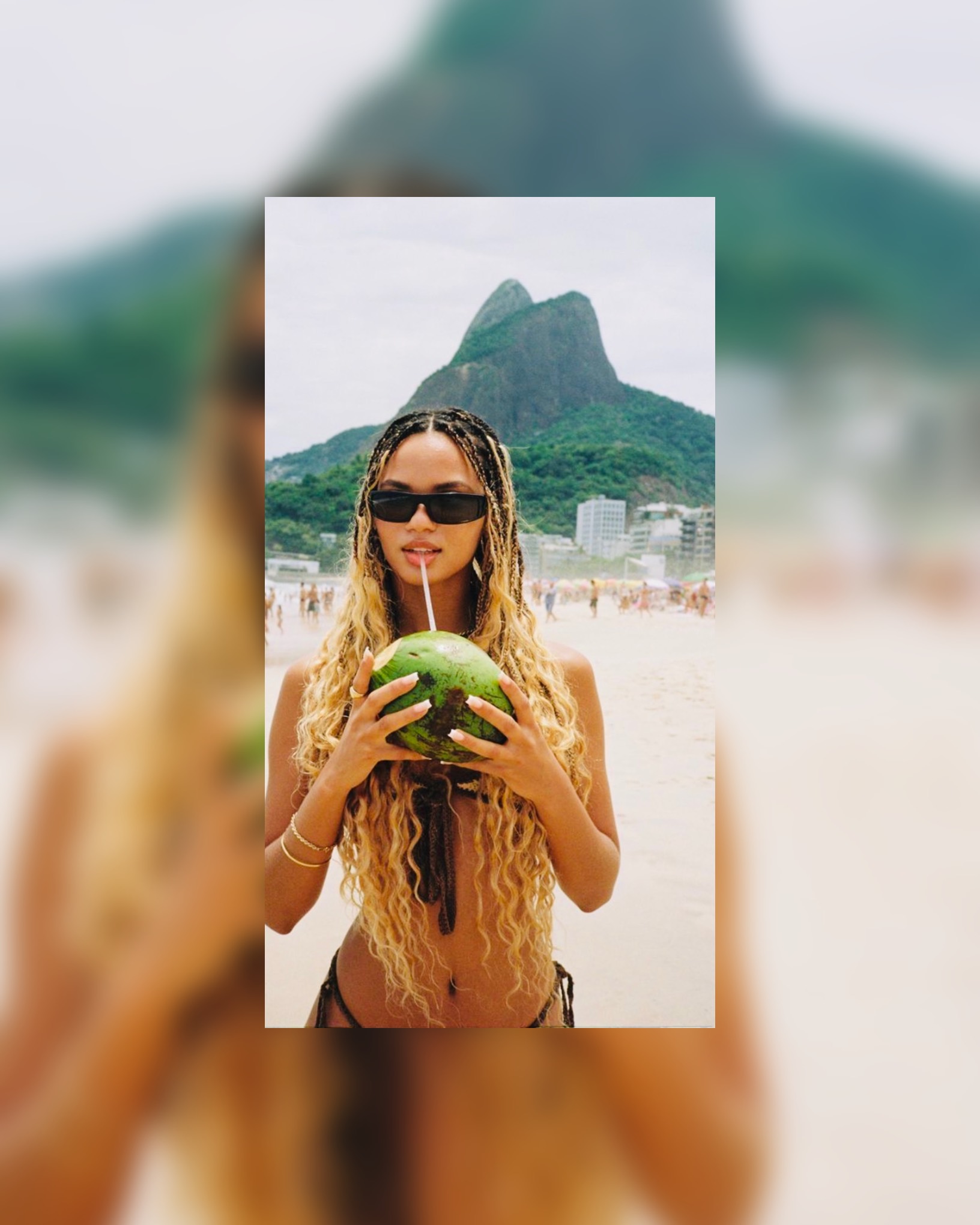 rap mid-tempo, fantasy, dreamy, tropical vibe blended with heavy drums and base, female vocals high pitched, light, ethereal, glassy, airy, neutral delivery, with autotuned slight anime style, island, coastal sound with hip hop undertones, whimsical, enchanted sound, girly, breezy luxury high-end hotel music vibe, big box, surround sound, cinematic, lush full hook, bridge, layered